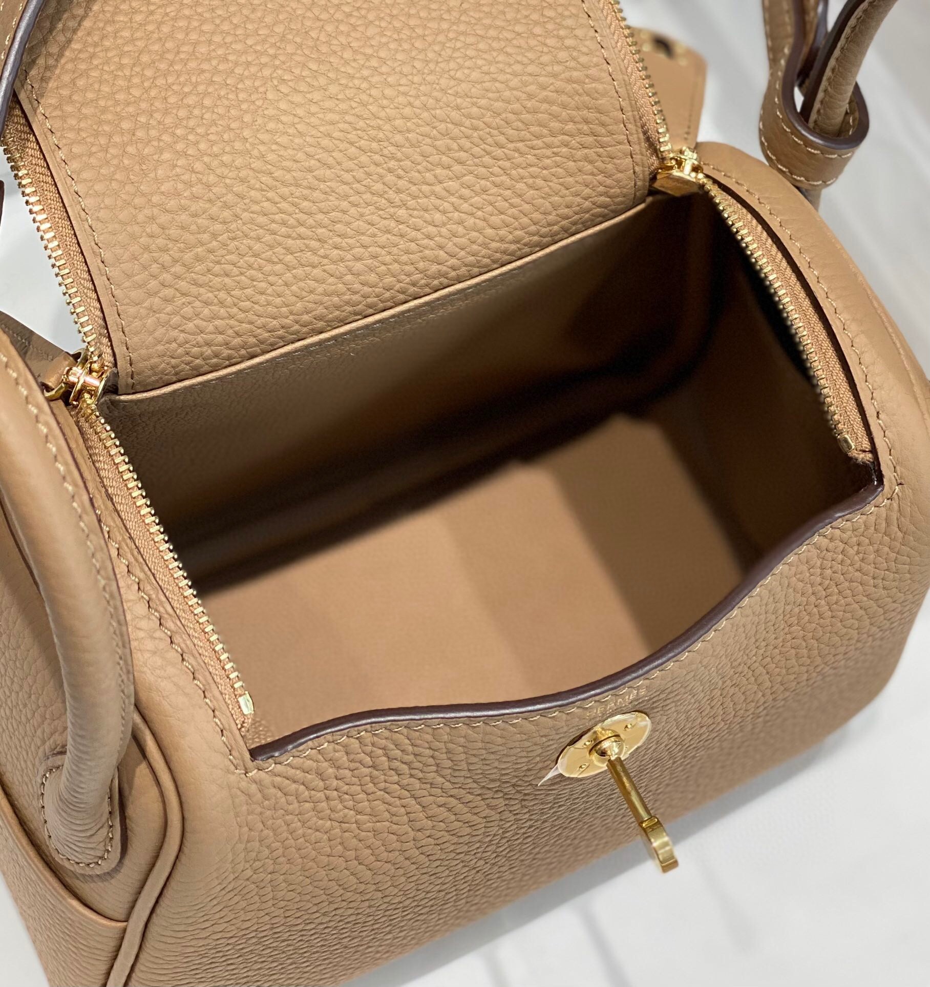 Hermes Lindy Mini Bag In Chai Clemence Leather GHW