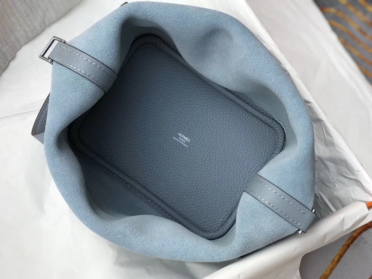 Hermes Picotin Lock 18 Bag In Blue Lin Clemence Leather