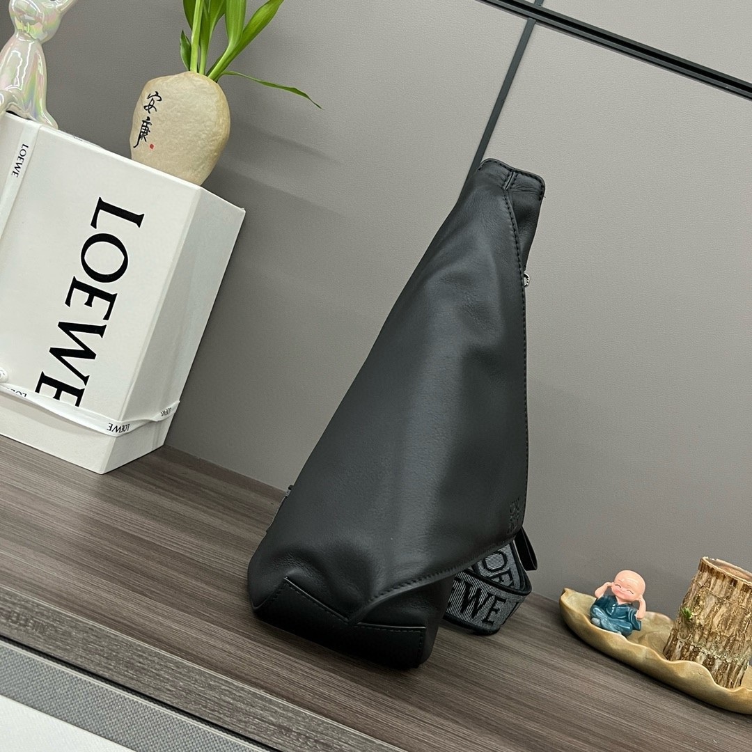 Loewe Anton Sling Bag in Black Calfskin and Jacquard