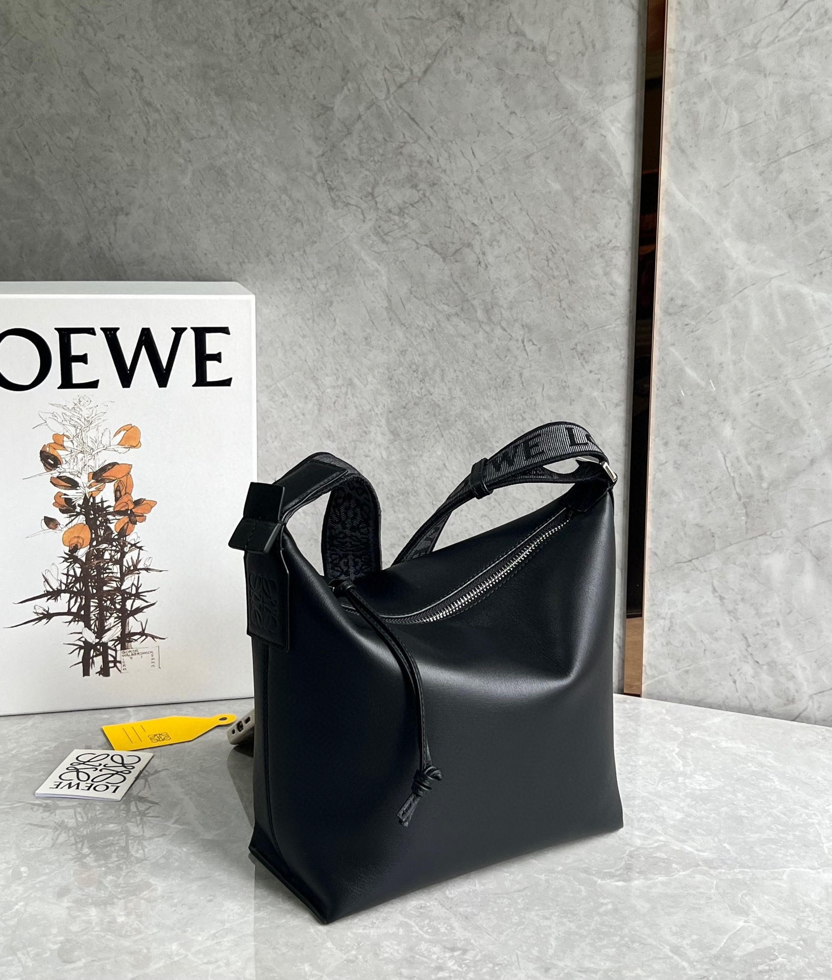 Loewe Cubi Small Bag in Black Calfskin and Jacquard