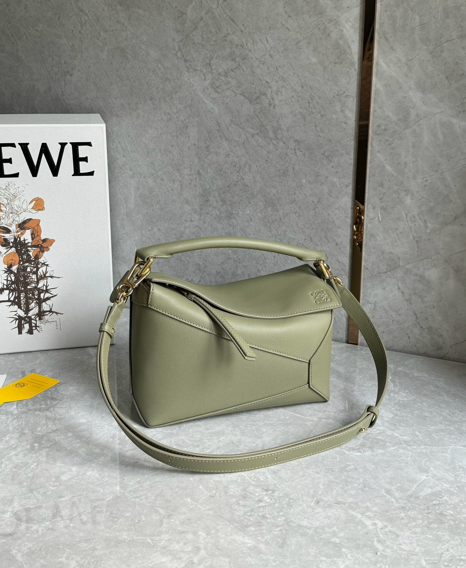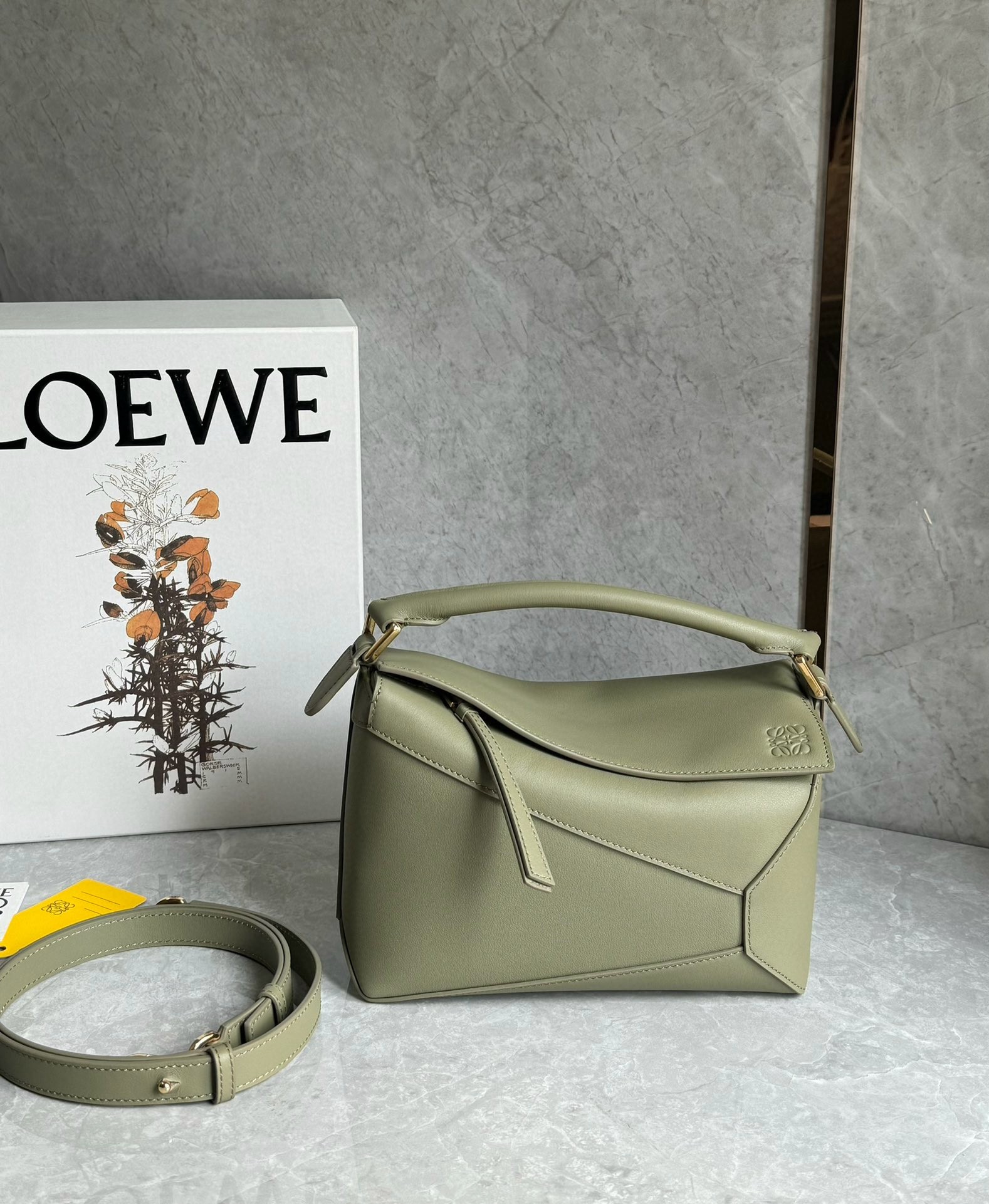 Loewe Puzzle Edge Small Bag in Eucalyptus Green Classic Calfskin