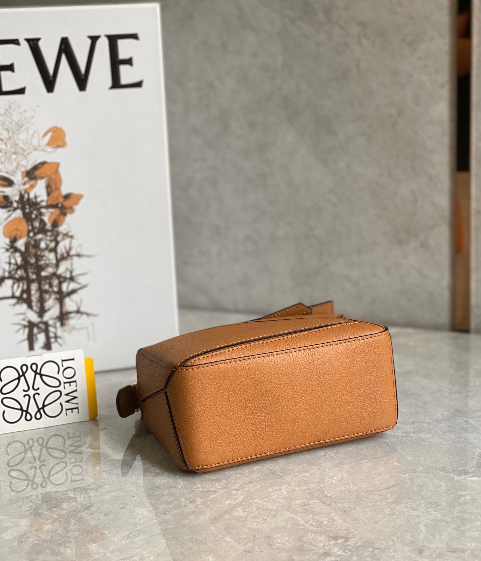 Loewe Puzzle Mini Bag In Brown Grained Calfskin