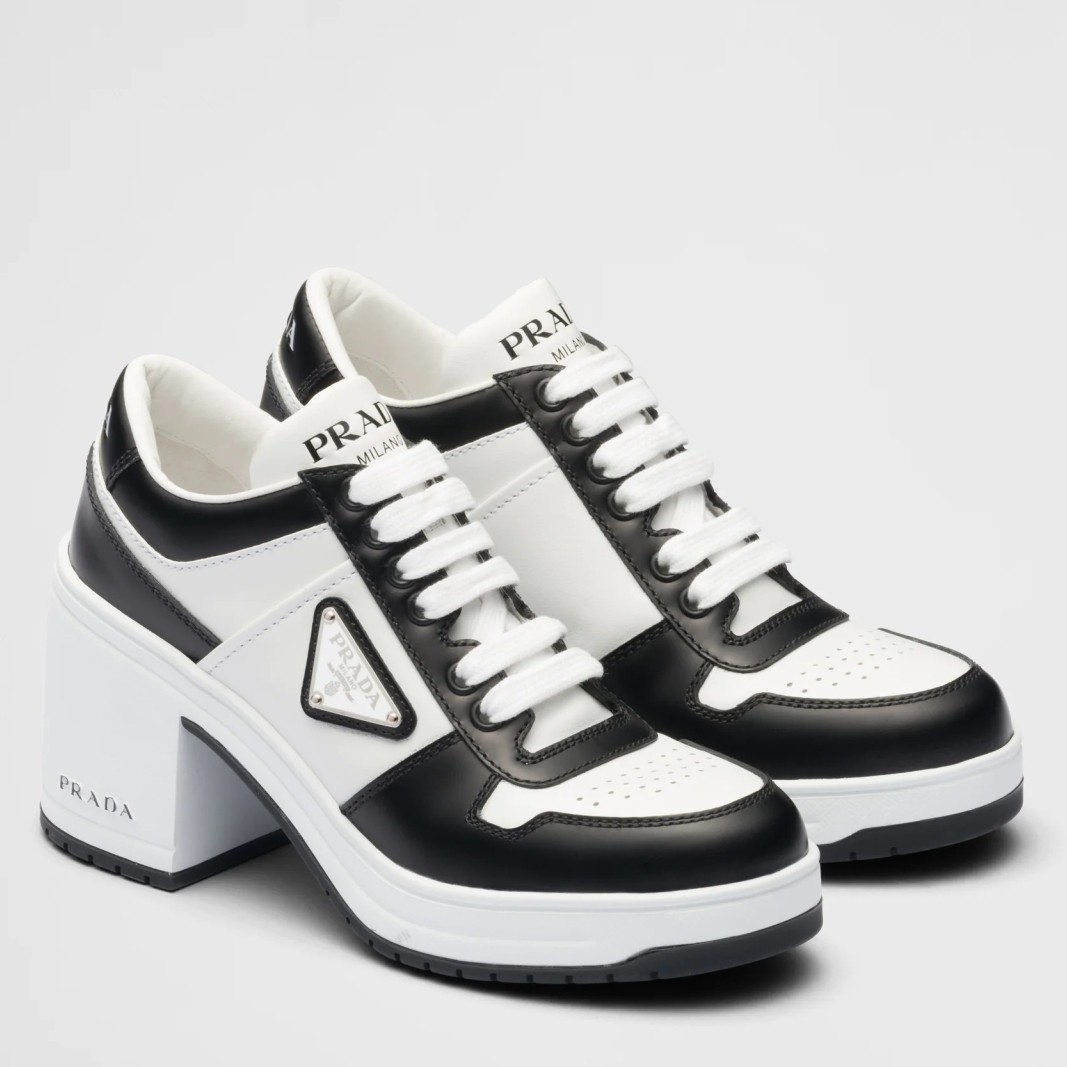Prada Downtown High-heeled Sneakers in Black and White Leather
