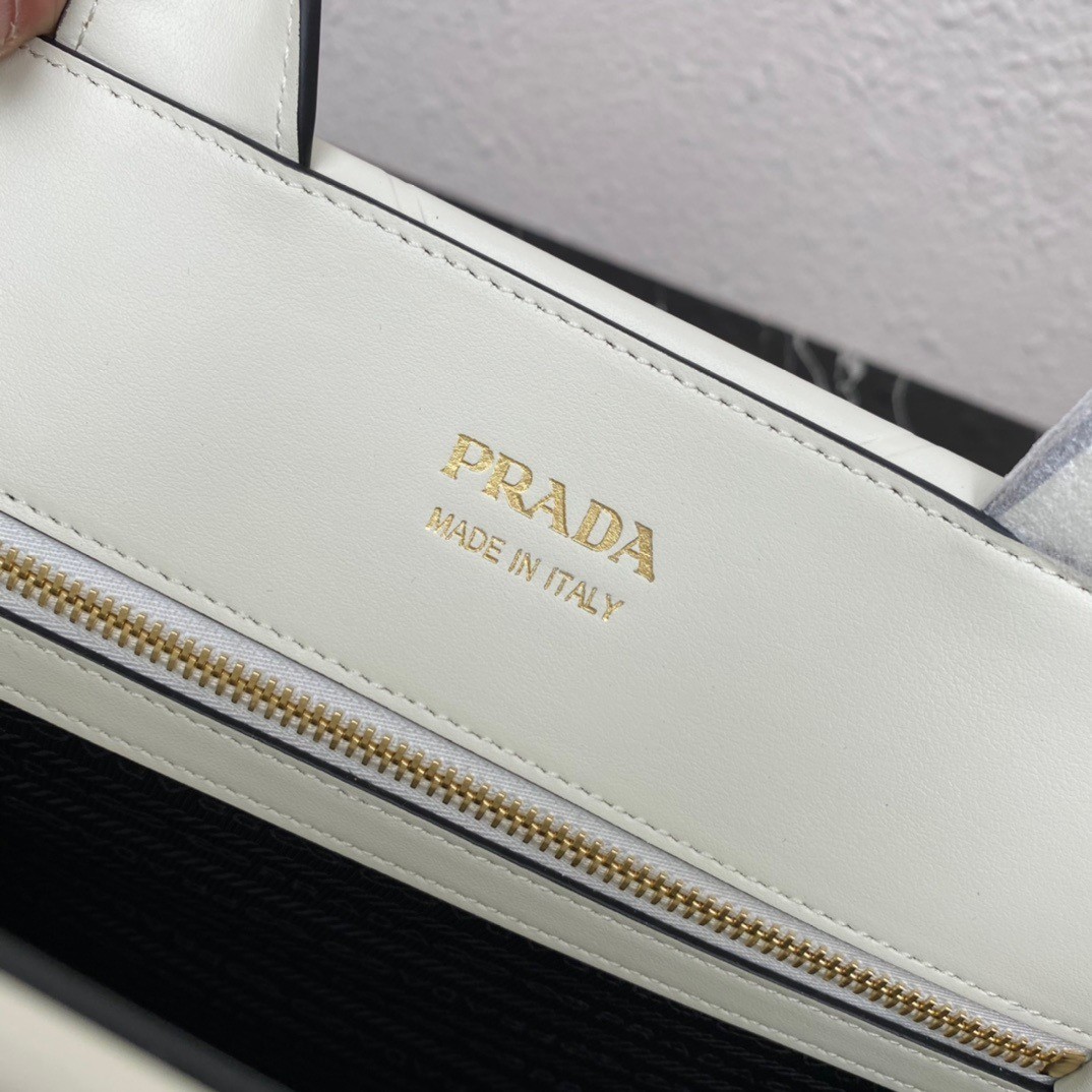 Prada Symbole Medium Bag with Topstitching in White Leather