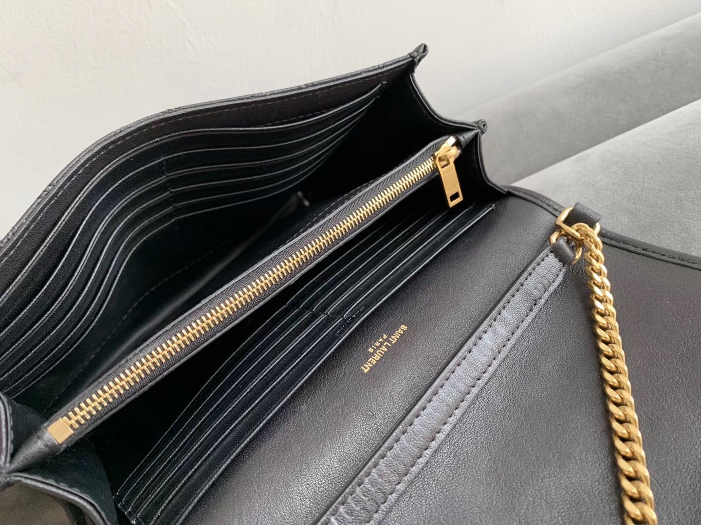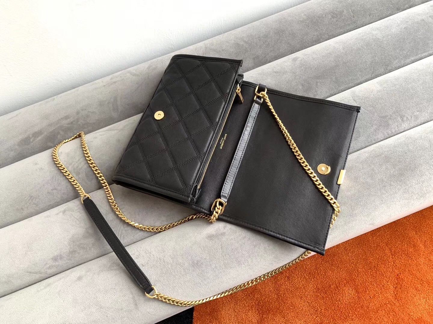 Having revolutionised fashion in the '60s with its exquisite and highly sophisticated collections, Saint Laurent maintains its cult status thanks to timeless styles and accessories like the Becky chain wallet. Imagined in the label's signature quilted leather, the slick and practical design is infused with classic references thanks to the iconic YSL logo lettering in gold-tone hardware displayed at the front.