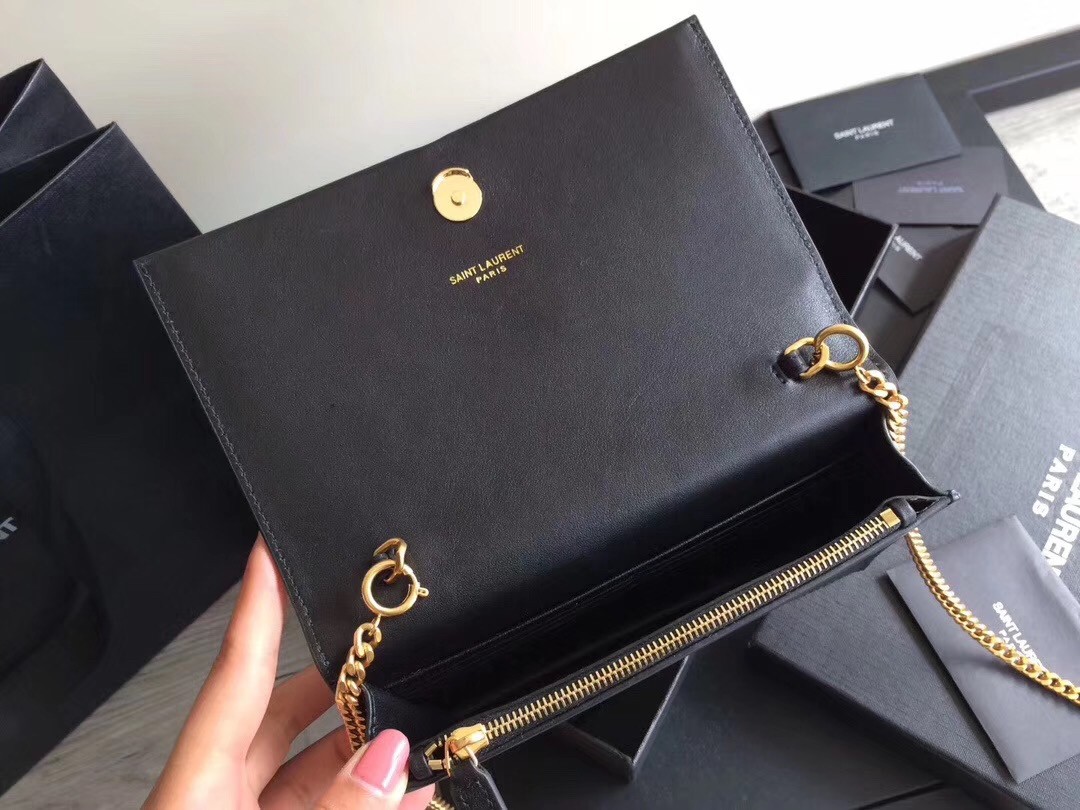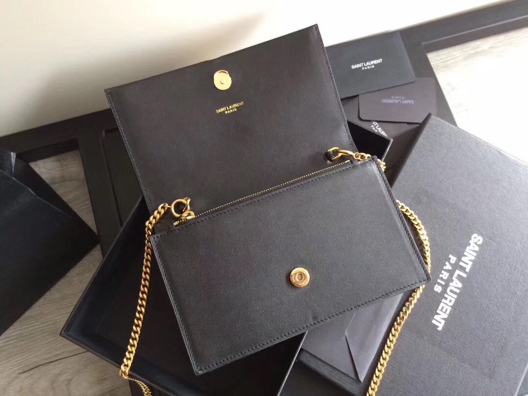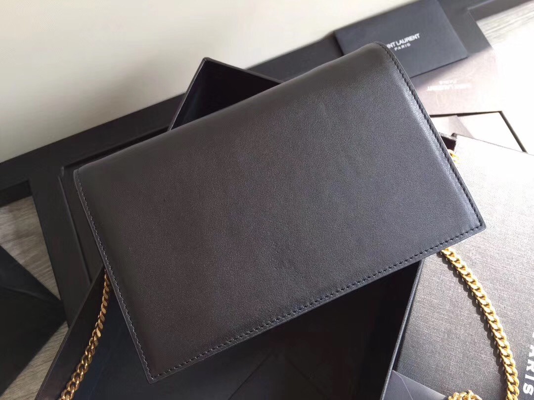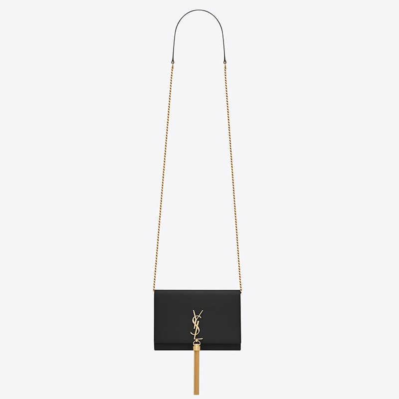 Remaining true to the label's signature Parisian aesthetic, Saint Laurent's Kate tassel chain wallet is presented in calfskin leather. Fabricated at the label's Italian atelier, the Kate tassel chain wallet is instantly recognizable thanks to the delicate hanging tassel embellishment and central interlocking YSL logo plaque to the front.