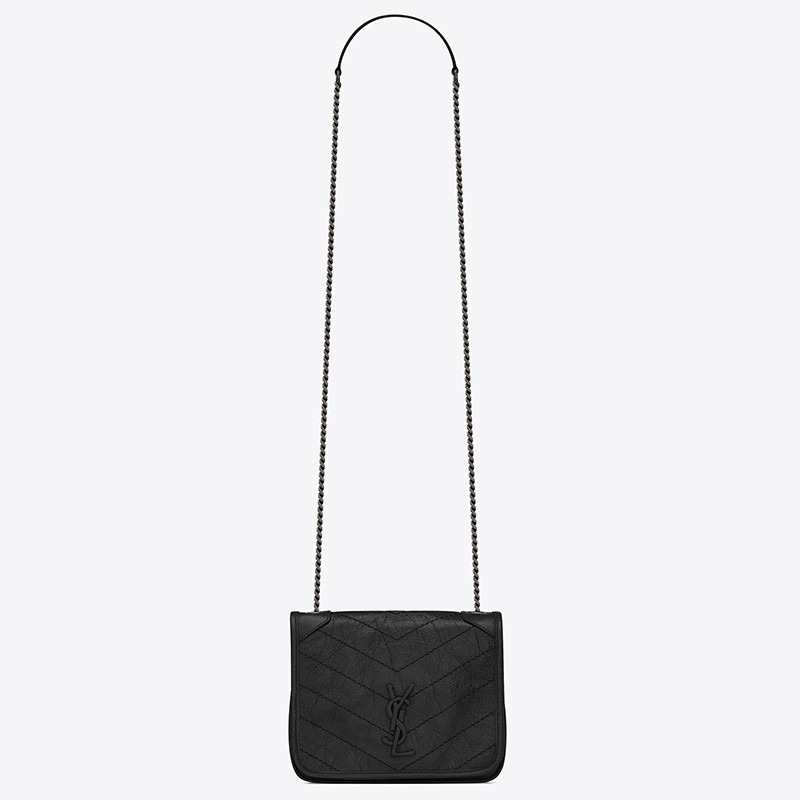 Saint Laurent WOC Niki Chain Wallet In Black Crinkled Leather