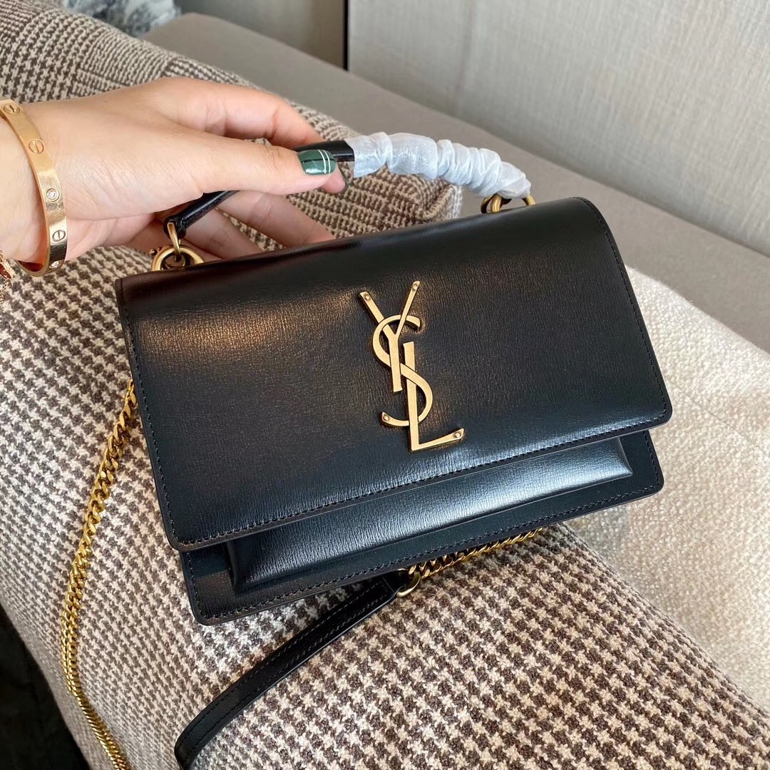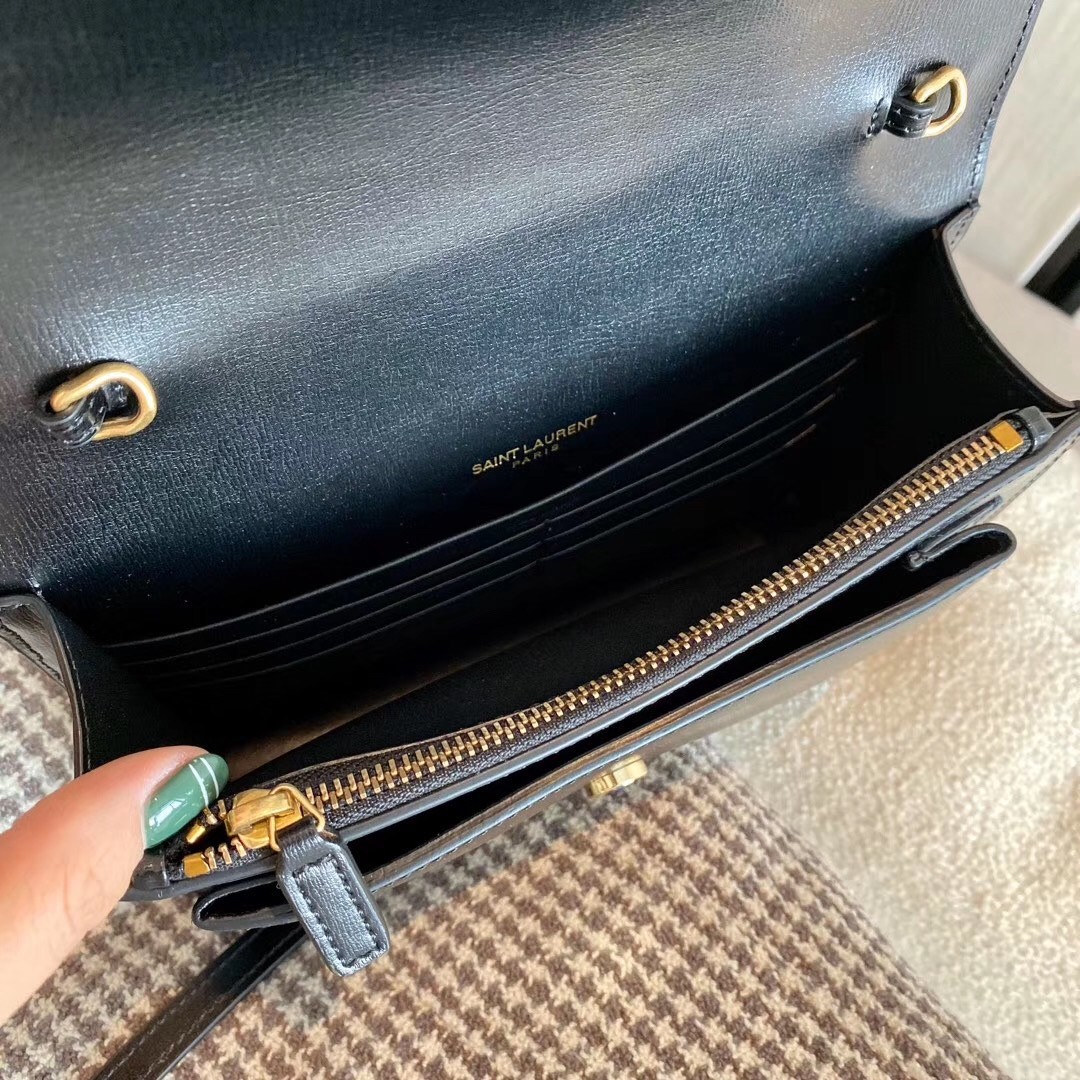 Saint Laurent WOC Sunset Chain Wallet In Black Calfskin