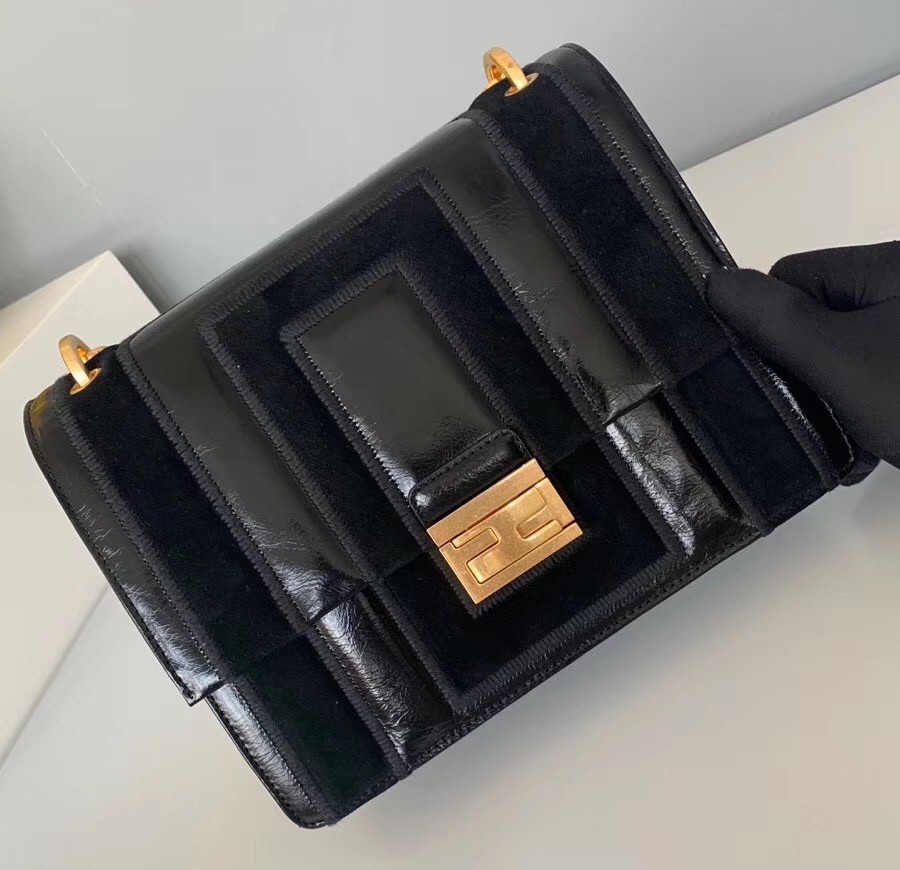 Fendi’s AW19 collection put the focus on retro archival prints and there’s a definitive Art-Deco theme to its designs, like the updated Kan U shoulder bag. Covered with stripes, it’s made from leather and suede with the iconic FF gold-toned logo sitting at the centre. The spacious compartment holds two slip pockets that are just big enough for your cards.