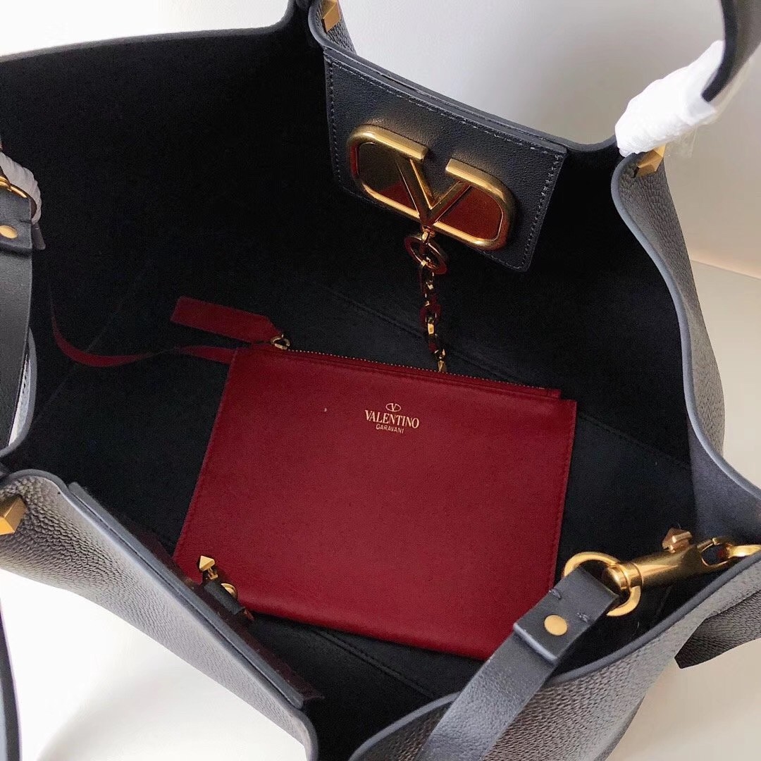 Born in the midst of 1960s Italian glamour, Valentino never forgets its roots. Think expert craftsmanship and luxurious finishings, even when the brand takes a more modern path to get there. This leather Valentino Garavani VLOGO escape shopper tote features shoulder straps, gold-tone hardware, a red detachable pouch pocket and a signature V logo plaque.