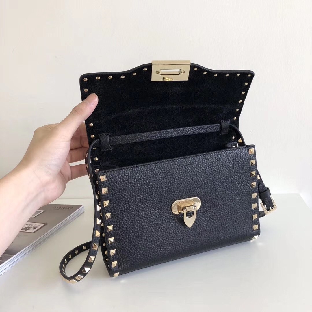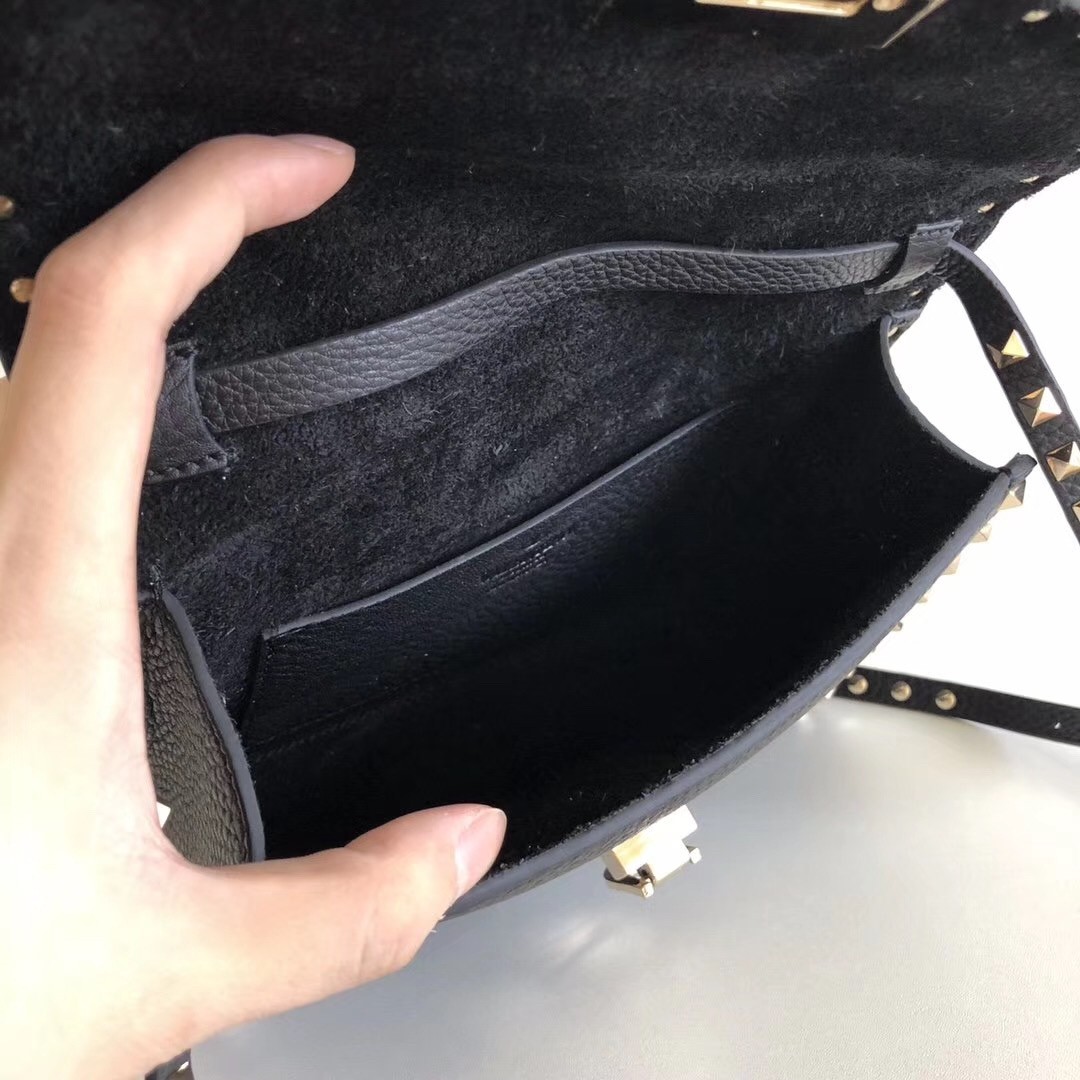 Valentino Garavani has reinvented 'The Rockstud' bag dozens of times since its debut in 2007, but the one thing that always remains the same is the iconic pyramid-shaped embellishments. Made from grained calfskin leather, this small version opens to a suede interior sized to fit your phone, wallet and makeup essentials. Wear it cross-body or detach the strap to carry it in-hand as a clutch.