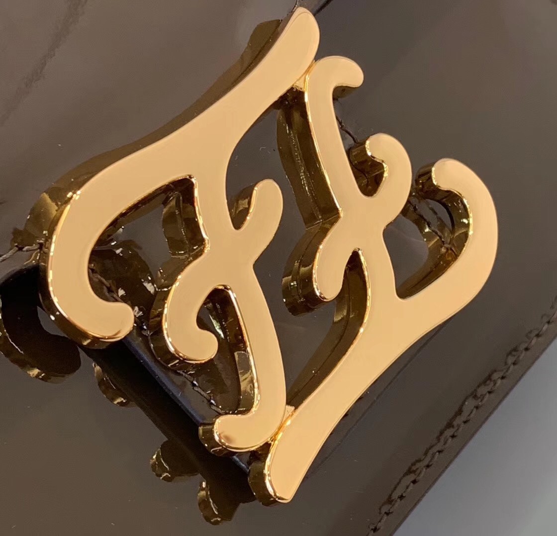 Fendi Karligraphy Bag In Brown Patent Leather