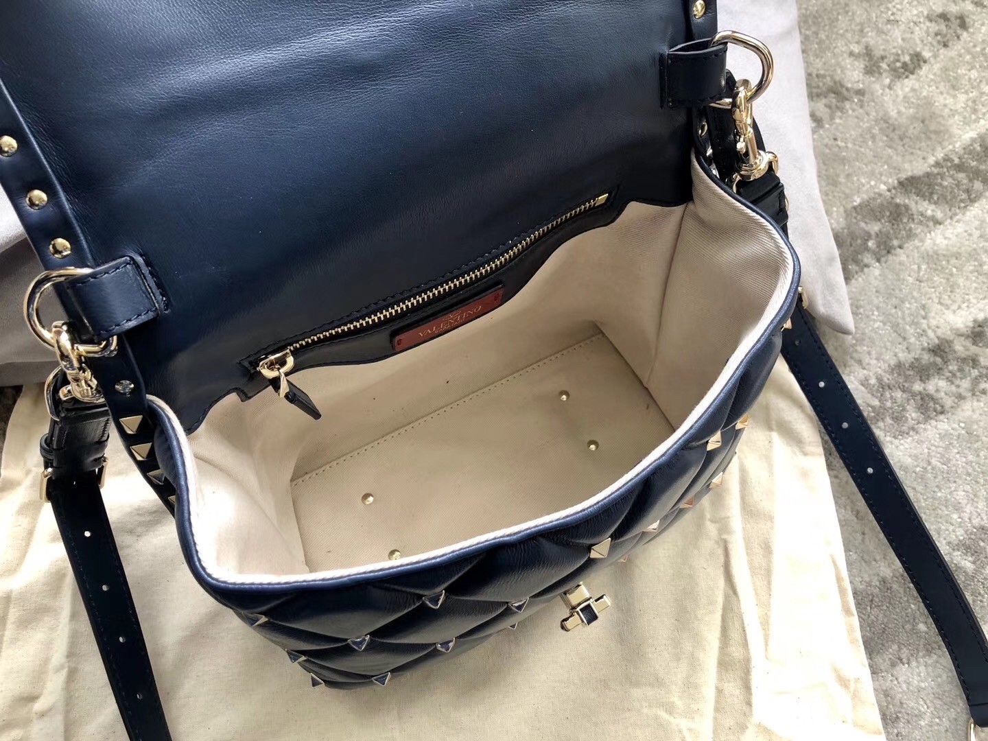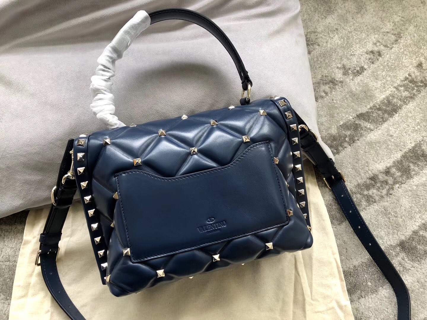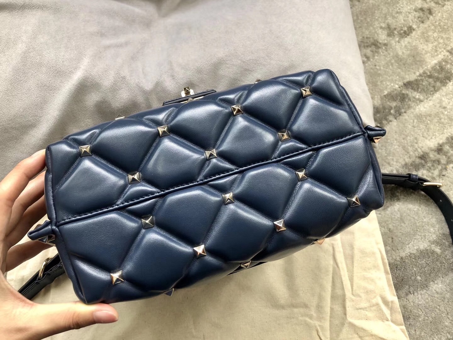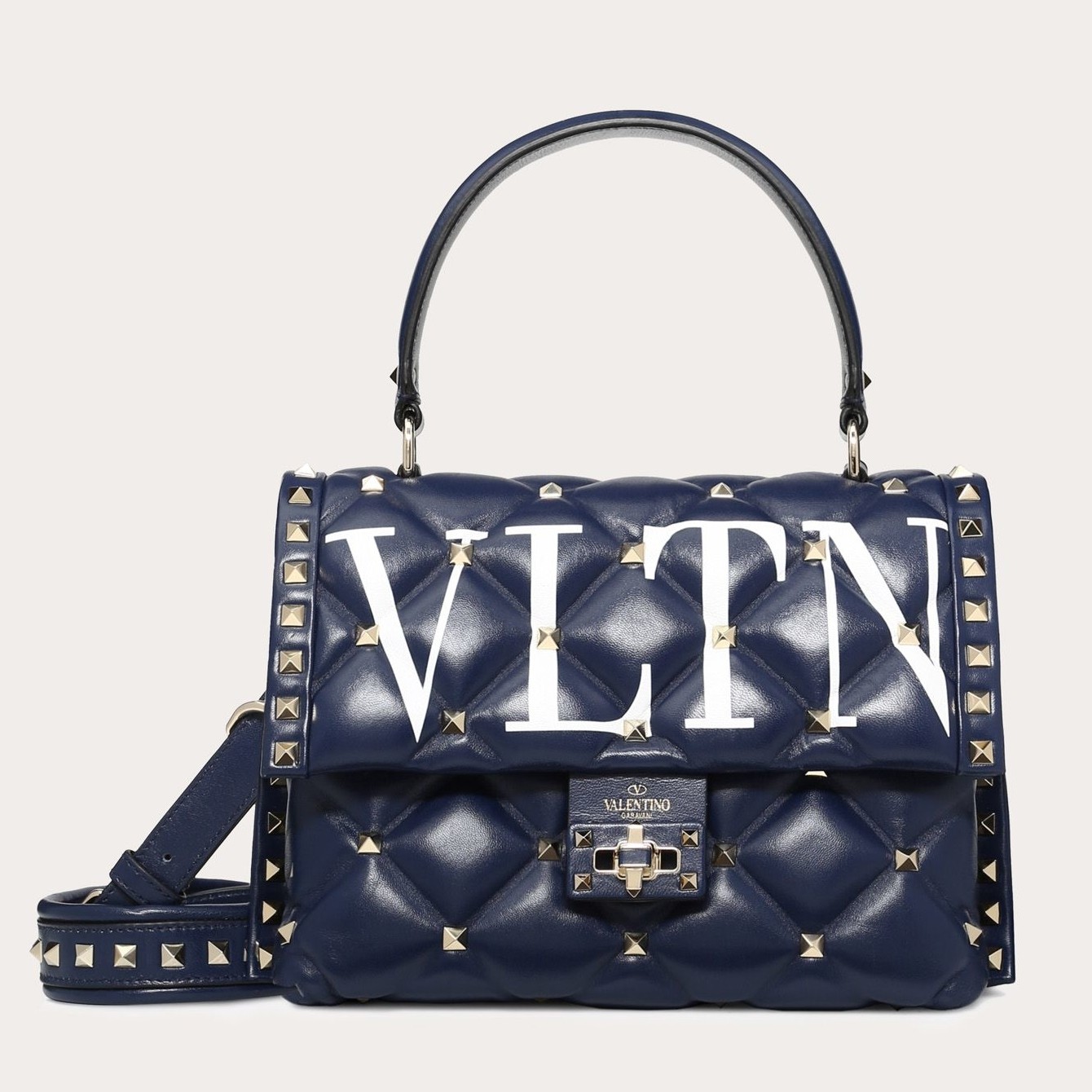 Another modern classic from Valentino Garavani, the Candystud bag is the latest update to the cult Rockstud collection. Boasting all-over signature pyramid studs set in capitonné quilting, the bag is realised in smooth leather and finished with the ubiquitous VLTN lettering. Swinging from an adjustable strap, it is perfect for adding a touch of glamour to your accessories edit.