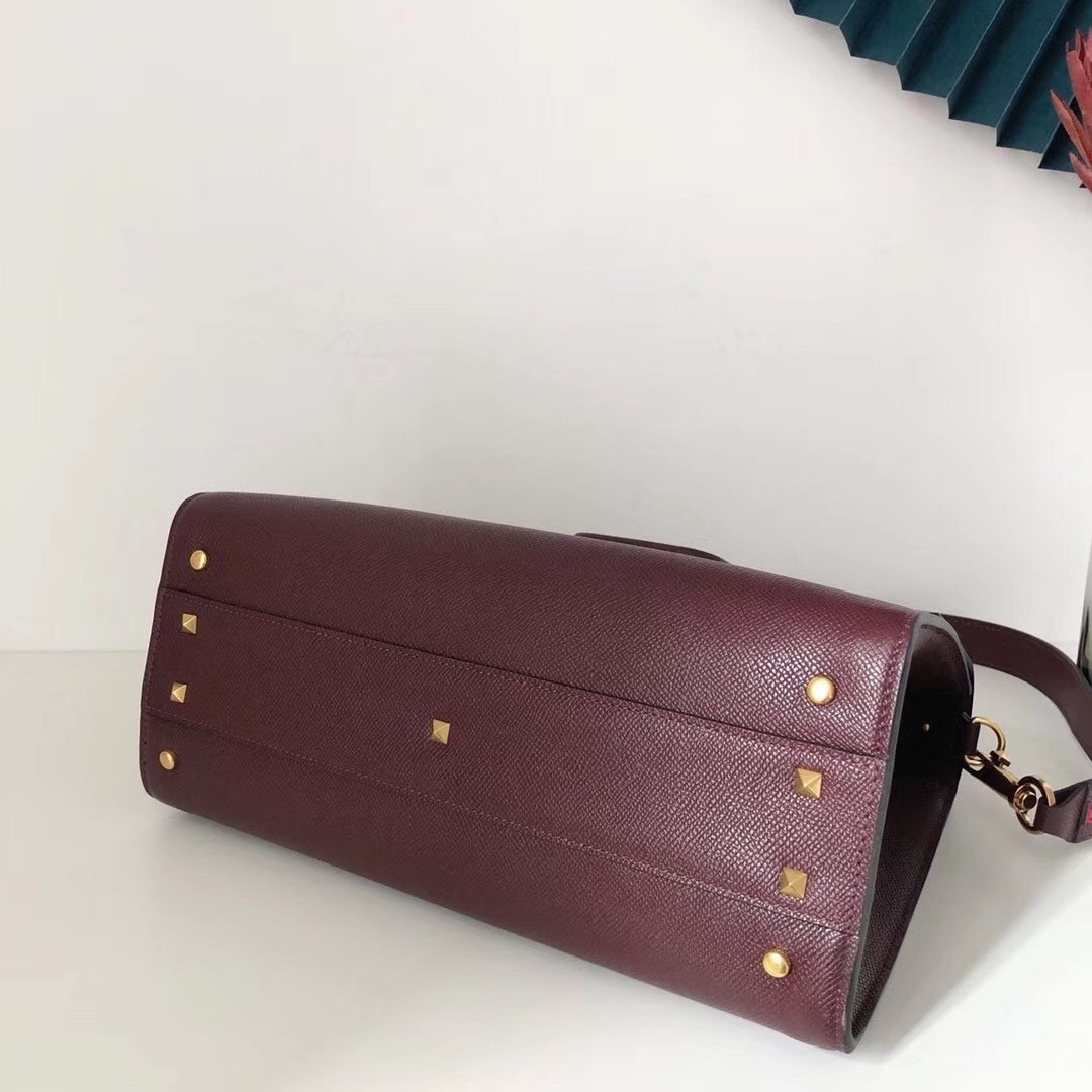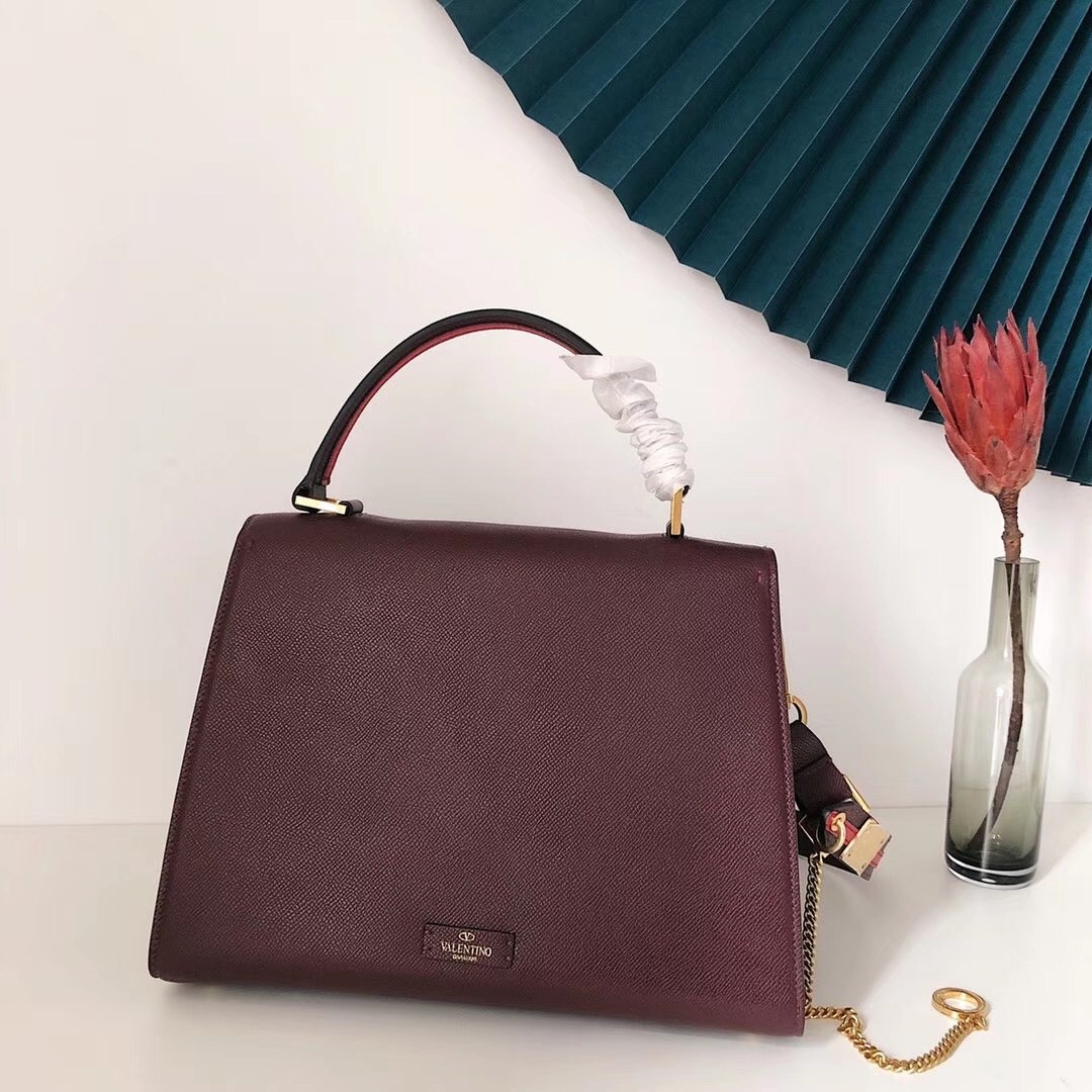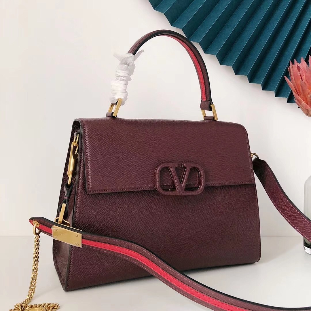 Valentino Garavani's 'VSLING' top handle large bag is made from grainy calfskin leather and updated in a scaled-down size that's great for nights out. It has a structured silhouette and is detailed with a tonal logo plaque for a clean, streamlined look. Attach the chain-trimmed strap to carry it on your shoulder.