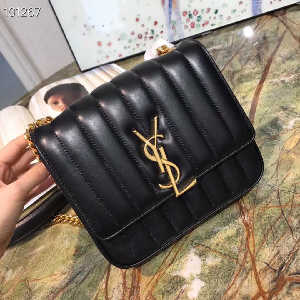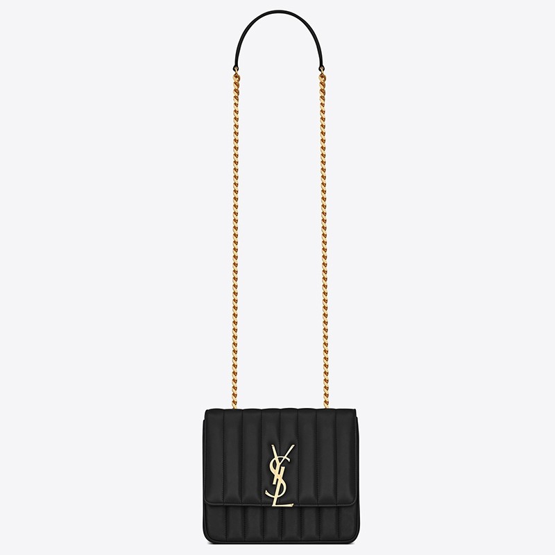 Saint Laurent first introduced the 'Vicky' bag for Spring '18, but our excitement was reignited when the house recently released a video of Kaia Gerber modeling the style as part of the #YSL15 campaign. This medium version has been made in Italy from smooth leather that's carefully quilted and embellished with the distinctive 'YSL' plaque. Drape the gleaming chain strap cross-body, keeping your phone in the back pocket for easy access.
