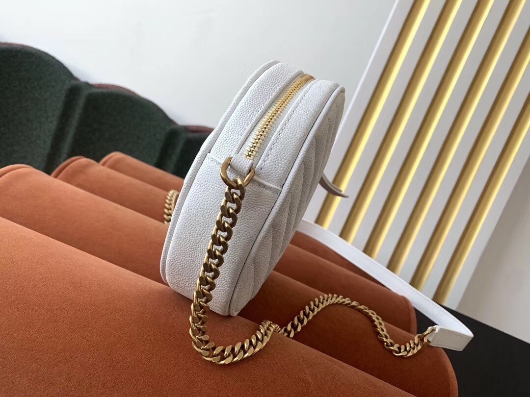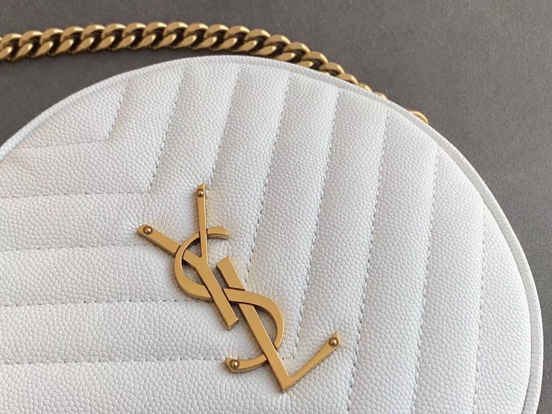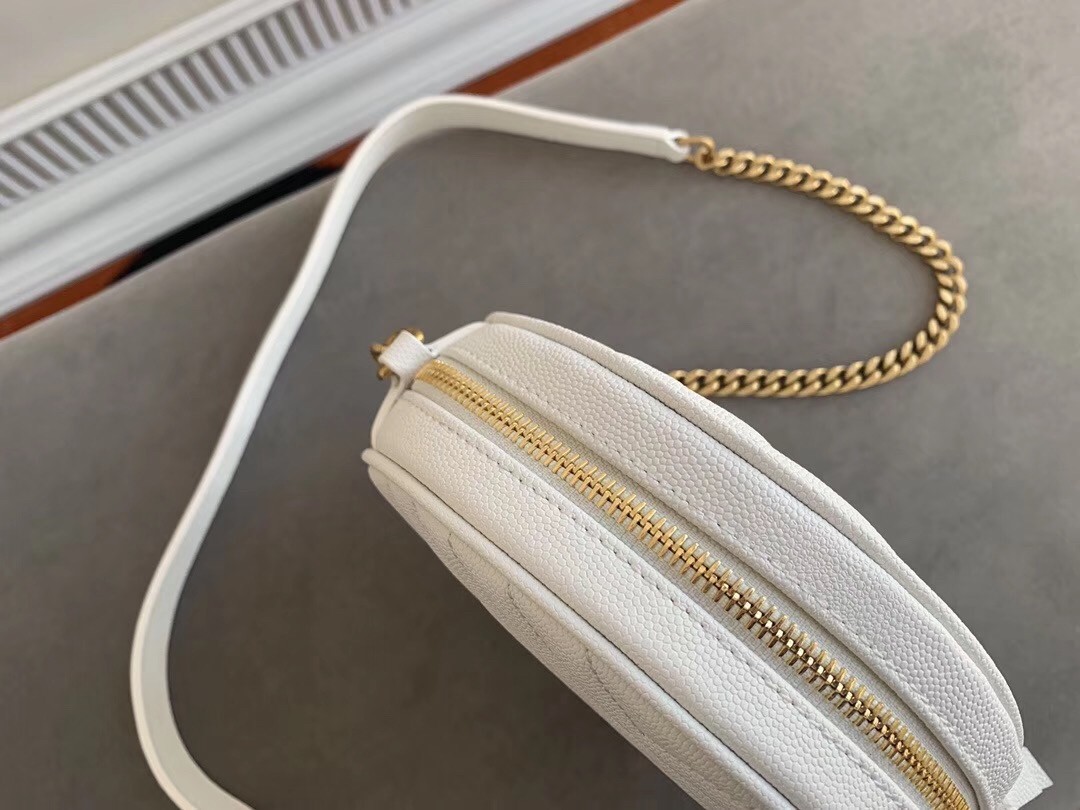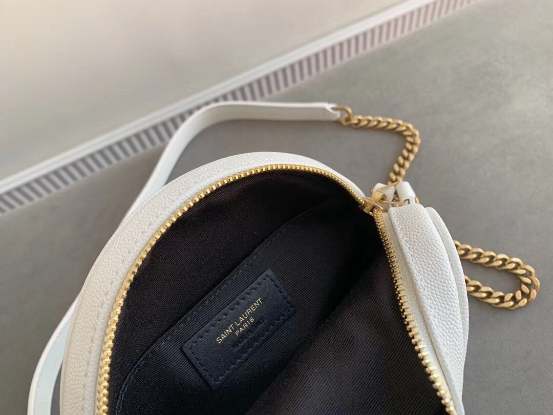 Saint Laurent Vinyle Round Camera Bag In White Grained Leather