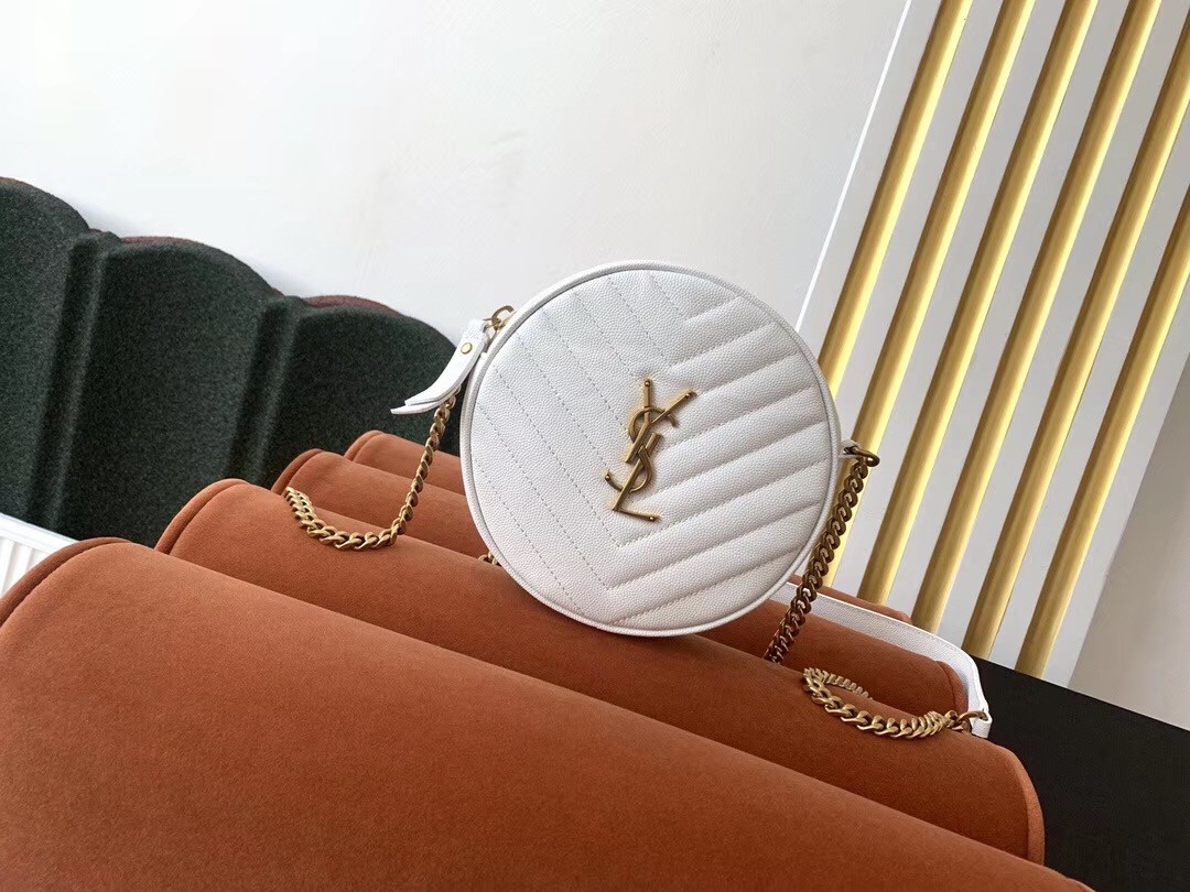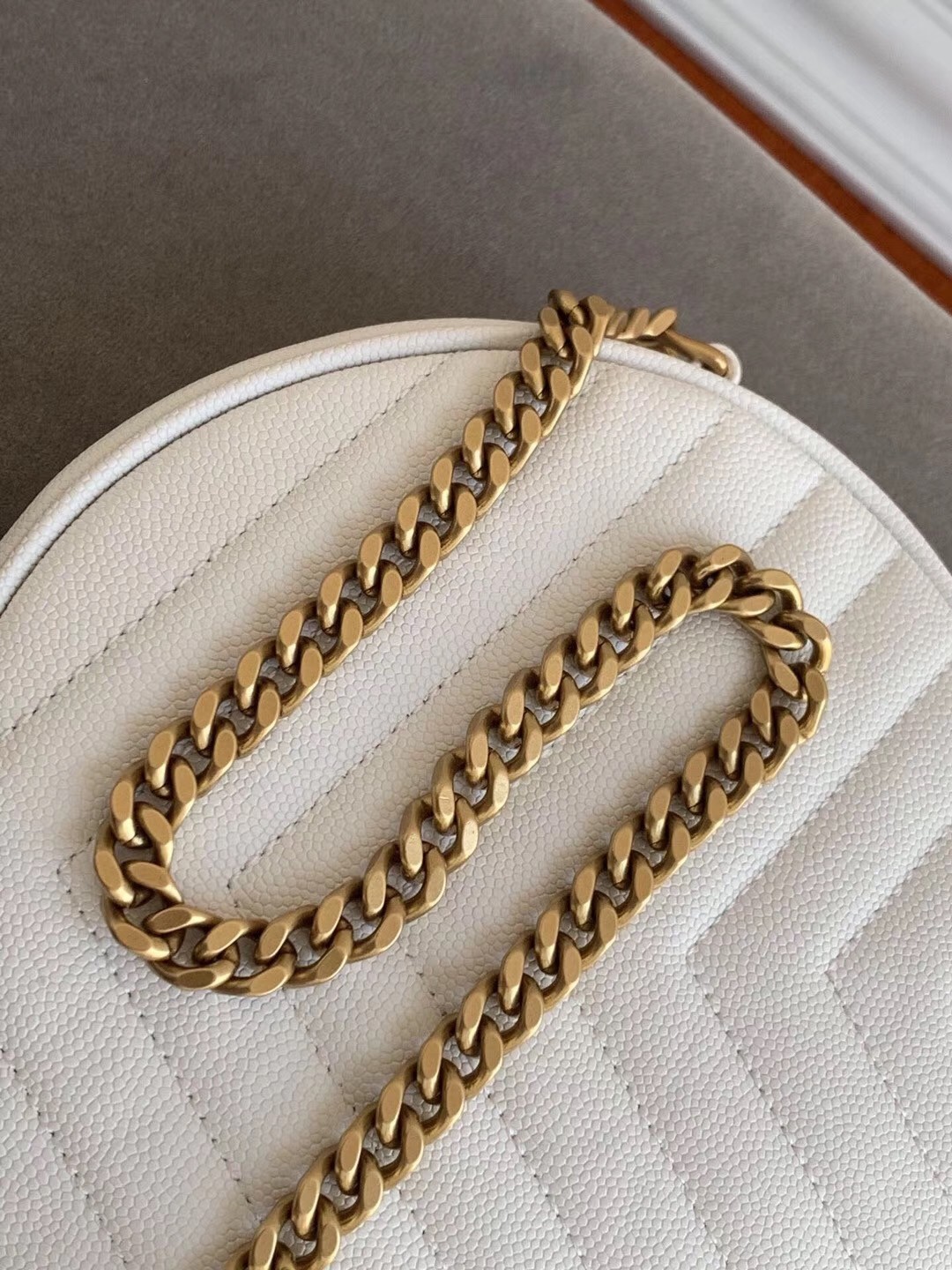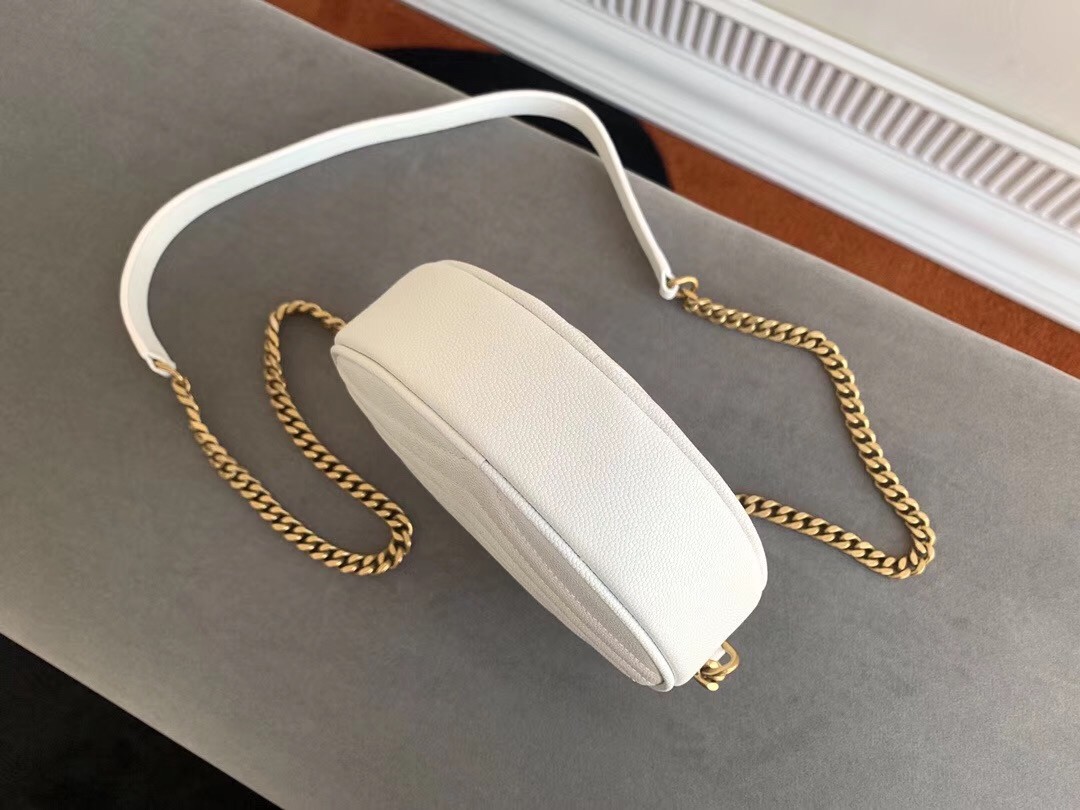 Saint Laurent Vinyle Round Camera Bag In White Grained Leather