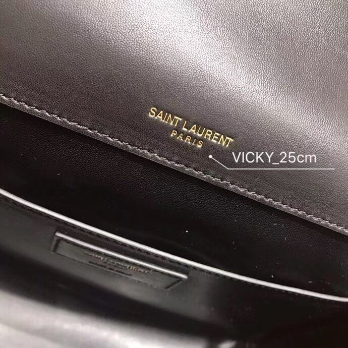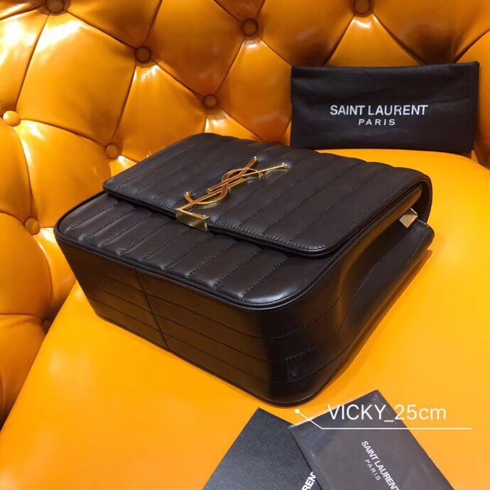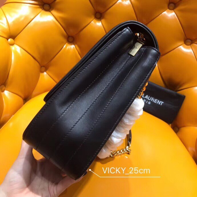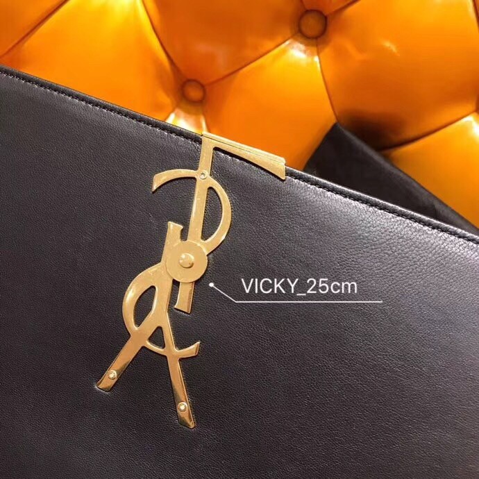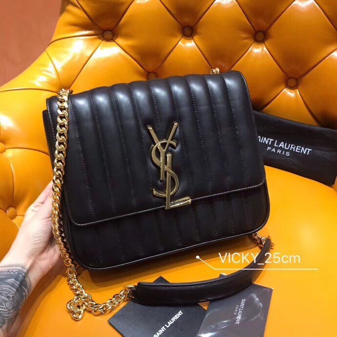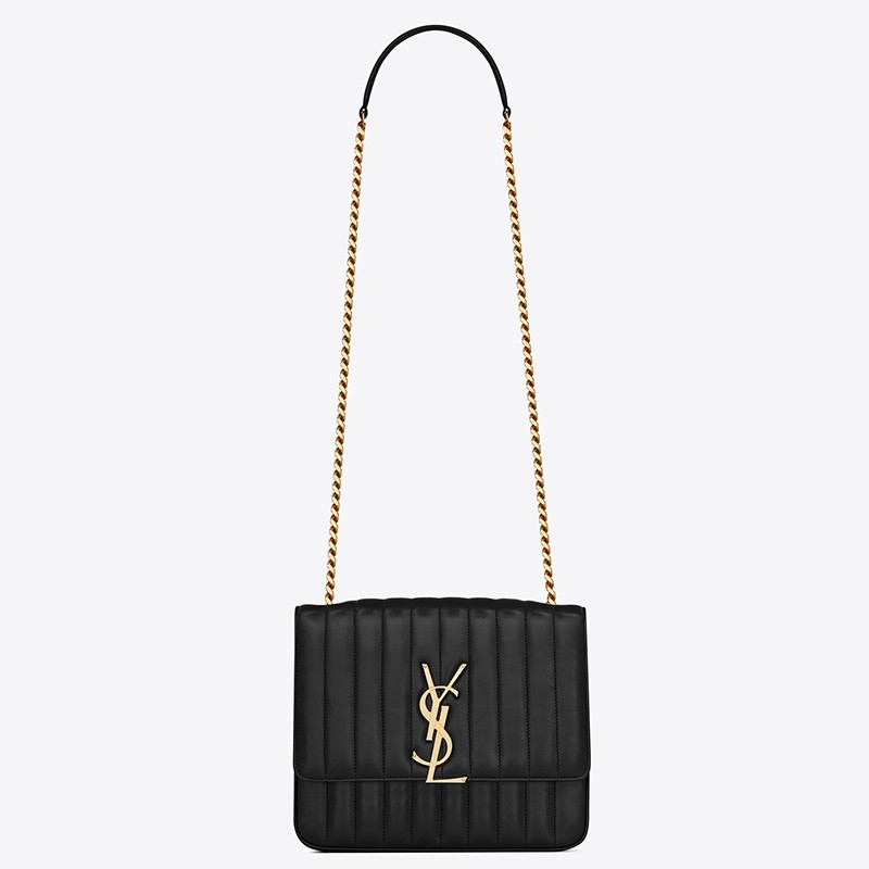 Debuted in Saint Laurent's Autumn/Winter 2018 runway show, the Vicky bag is inspired by geometric shapes of the '80s. Expertly crafted in Italy from lambskin leather, it is hallmarked with the label's signature YSL monogram in polished gold-tone metal. Swing the chain strap over the shoulder of a tailored dress for a sophisticated finish.