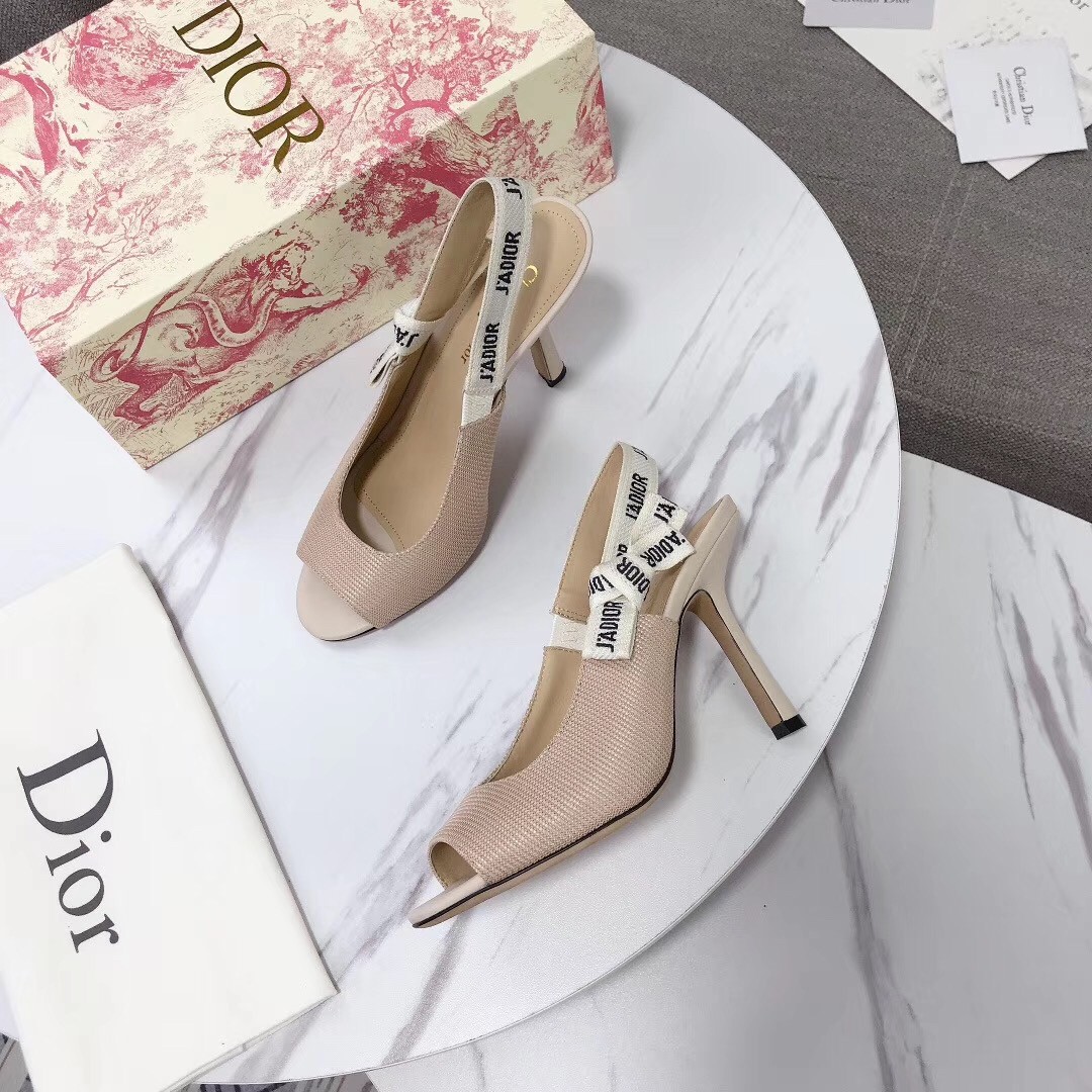 The J'Adior sandal presents a new elegant and summery design featured in the Summer 2020 collection. Crafted from nude technical fabric, the low-cut upper combines with a new 8.5 cm comma heel that's exclusive to this style, creating a strong silhouette. Signature Dior details are displayed on this peep-toe shoe with a 'J'Adior' motif adorning the embroidered cotton ribbon slingback strap and flat knot bow.