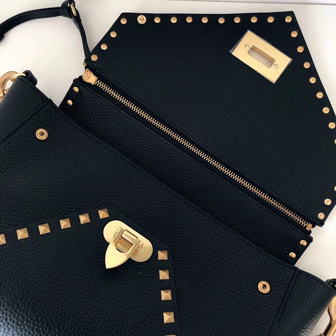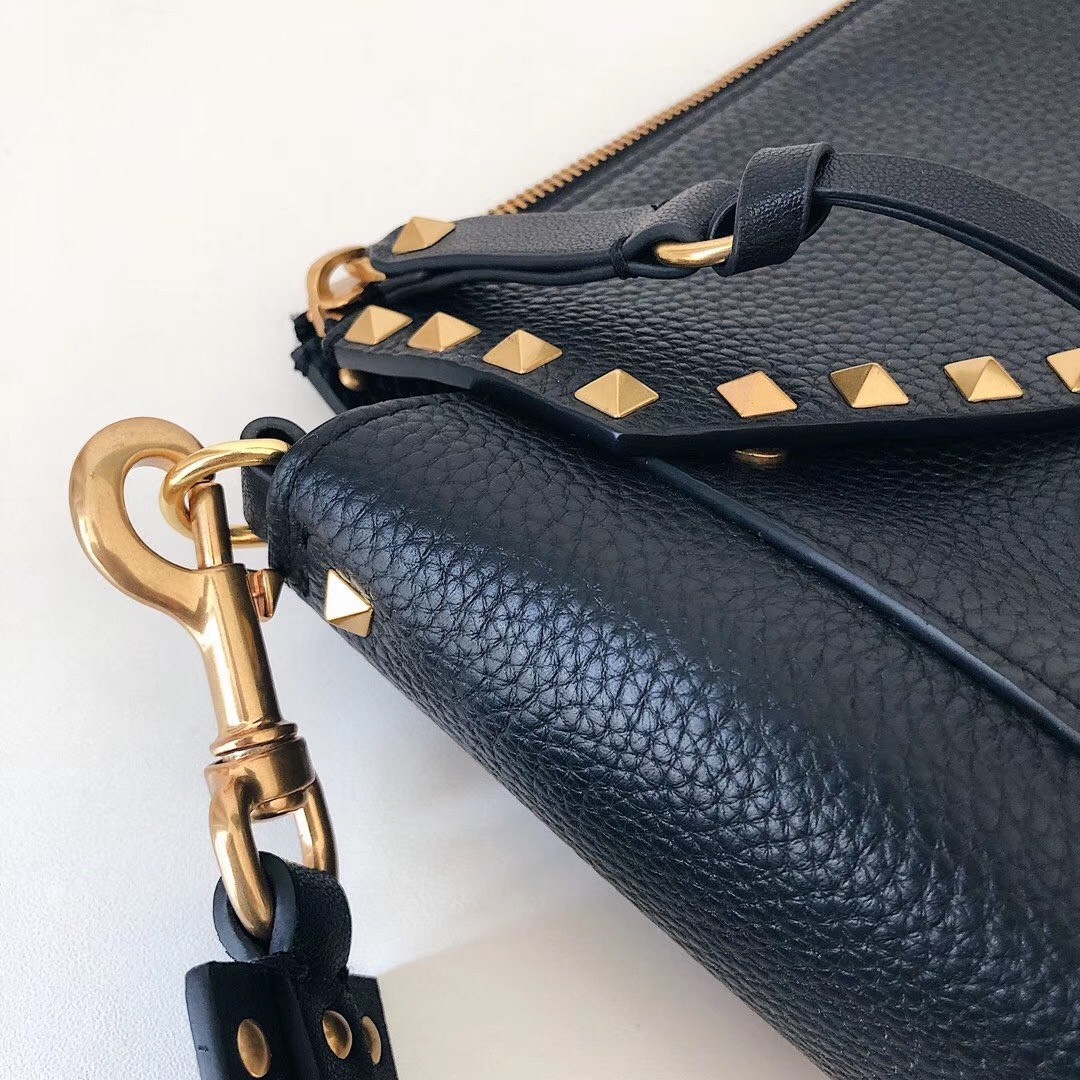 With its black color and studs, this Valentino Garavani Rockstud Hype shoulder bag reflects the spirit of this Italian fashion house. Featuring a contemporary envelope design, this accessory stands out with its studs and black lanyard attached to the zipper. Its oversized shoulder strap and snap hooks make it a unique accessory, perfect with skinny pants and a pair of thick-soled sneakers.