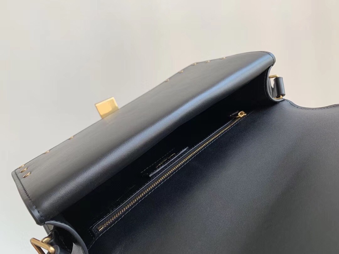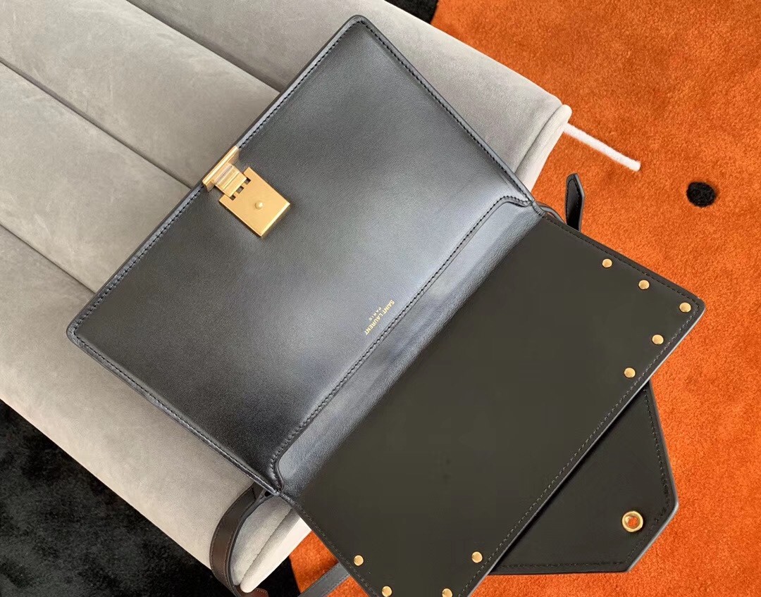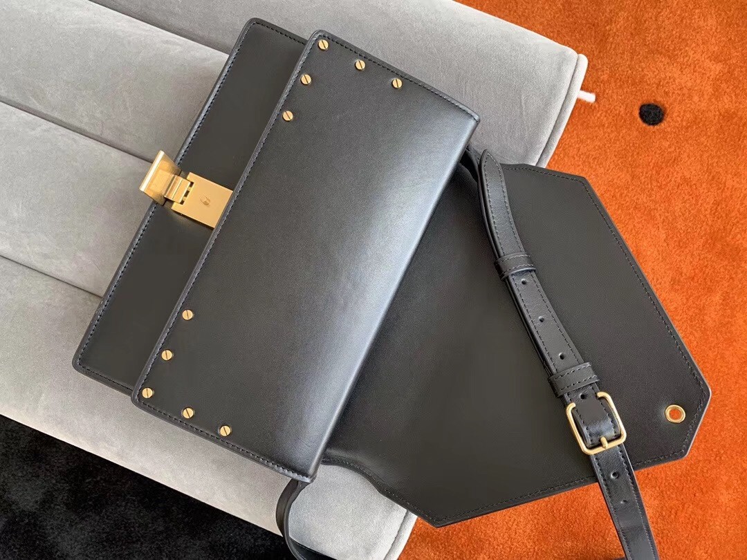 Crafted from smooth leather to a streamlined shape, Saint Laurent’s black Margaux bag is a timeless style. The front flap is fitted with a logo-engraved buckle, while gold-tone metal studs channel the Parisian label's elegant edge. Adjust the shoulder strap to showcase it against a printed coat.