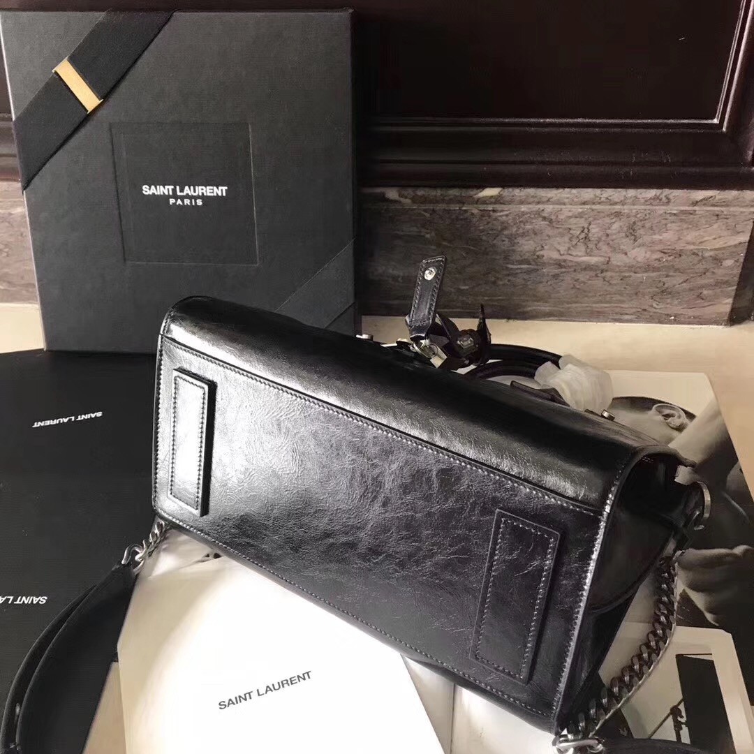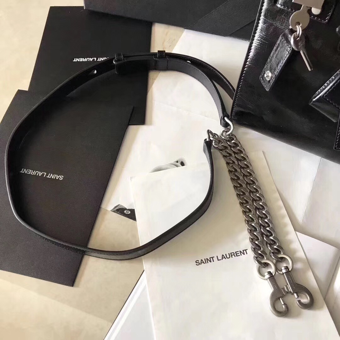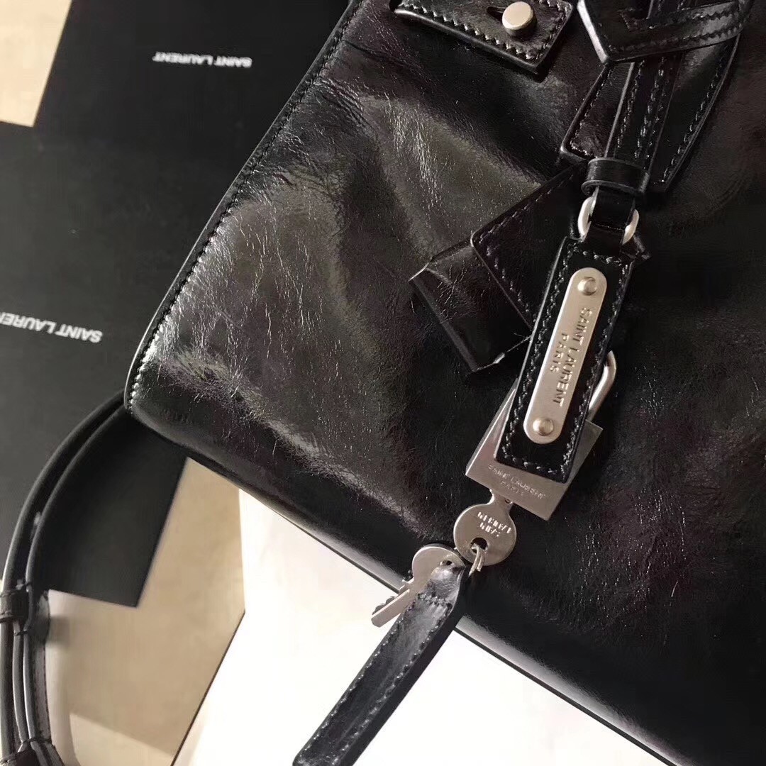 Saint Laurent is the rebranded version of the house of Yves Saint Laurent with creative director Hedi Slimane at the helm. Now considered a "Signature" Saint Laurent bag, this Sac de Jour tote features a sleek shape, accordion sides, tubular leather handles and an embossed Saint Laurent signature at the center. The fine textile interior boasts several pockets for storage. The beauty in this bag is surely in its simplistic nature.