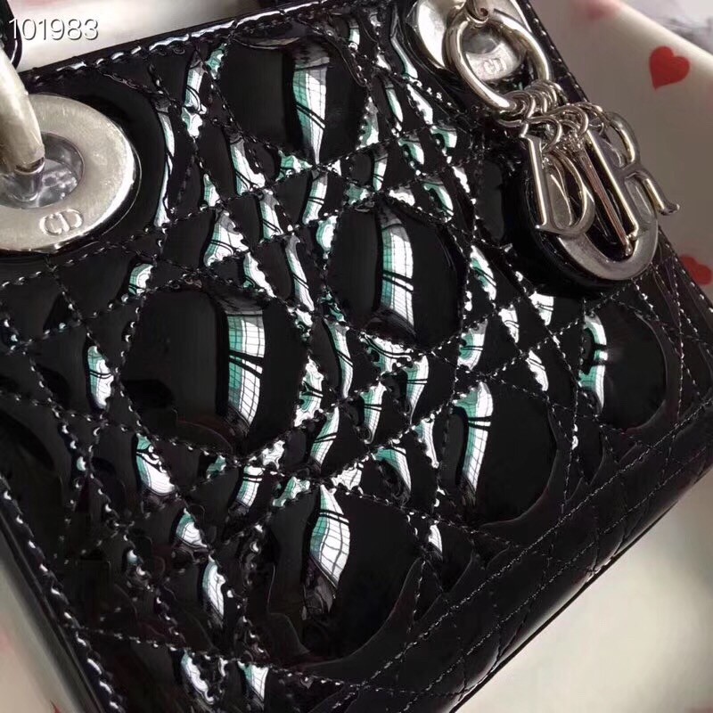 Dior Mini Lady Dior Bag In Black Patent Calfskin