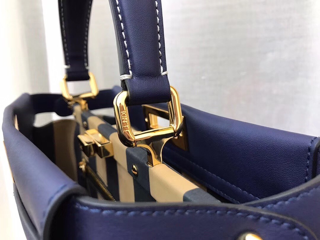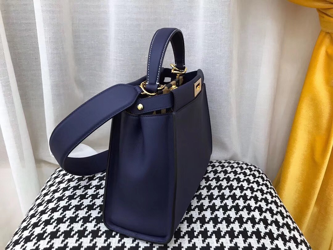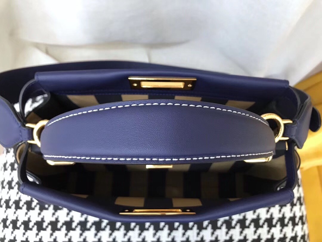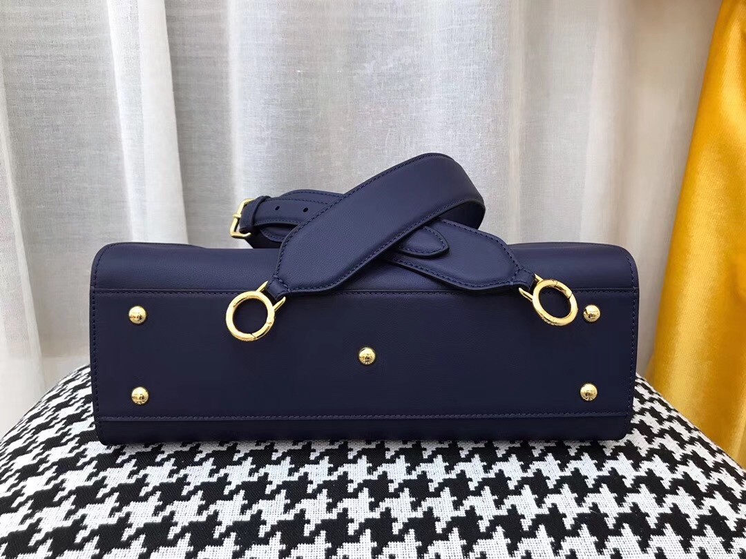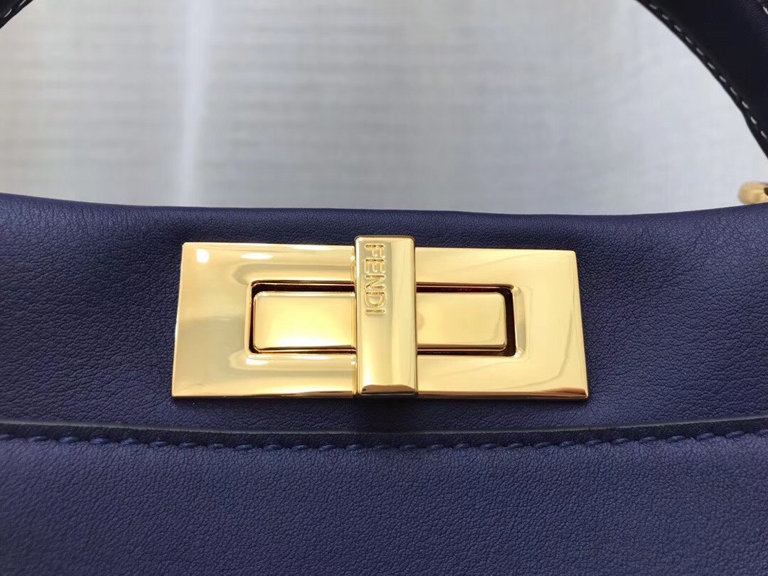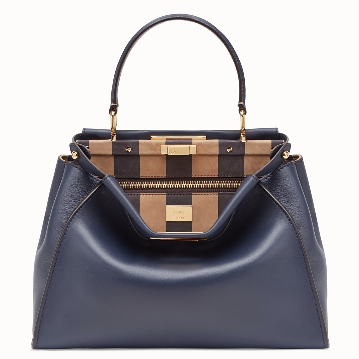 Medium handbag made with two compartments divided by a stiff partition. Twist lock on both sides. Lining with zip pocket. Single handle and an adjustable, detachable shoulder strap. Made with silk-effect, brown leather. Lining finished in nubuck leather with Pequin motif. Gold-finish metalware.