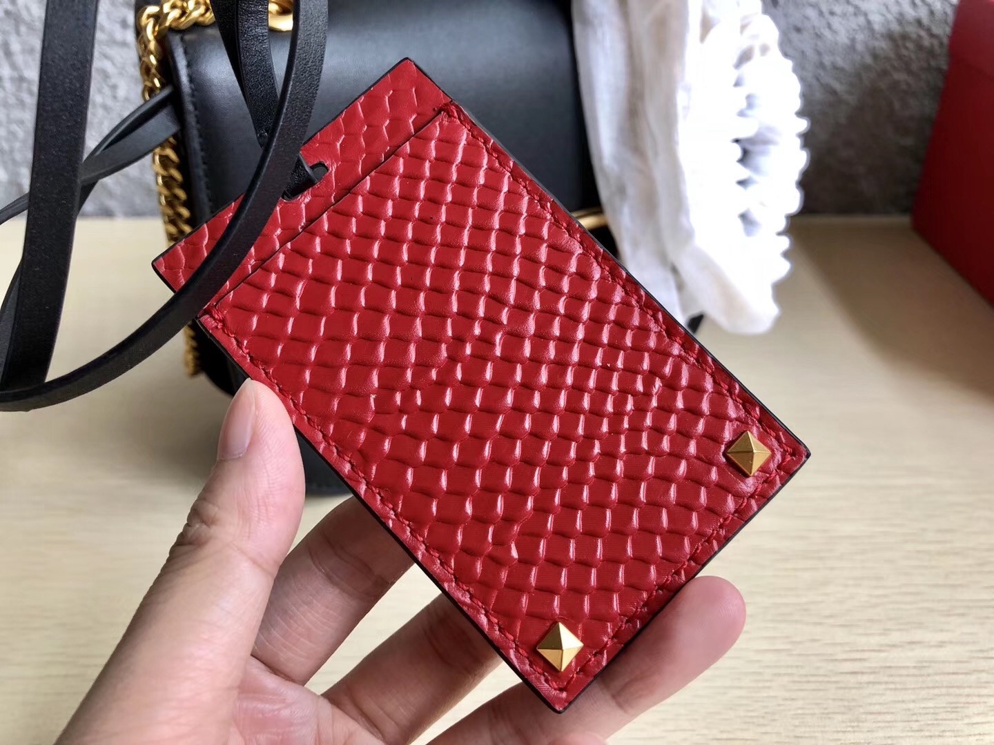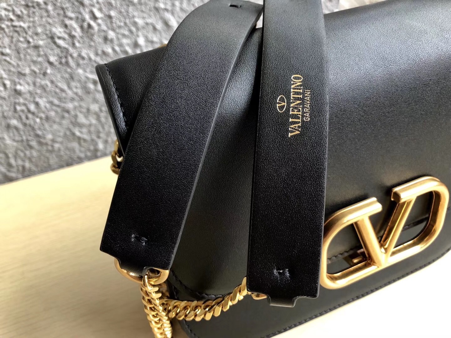 The Valentino Garavani Vlock small shoulder bag has so many details that appeal to the eye. First and foremost, its long leather strap and sliding chain, then its long leather tag that dangles and floats with each step, finished off by the famous V at the closure. Valentino has created a sophisticated piece of leather work, a striking original.