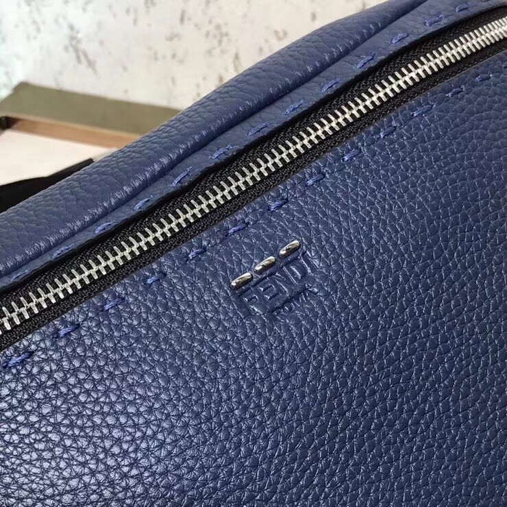 This Fendi Belt bag is made of blue Romano leather. Finished with “Metal Stitch” hand-sewn stitching, the bag attaches to the waist with the buckle belt strap or functions.