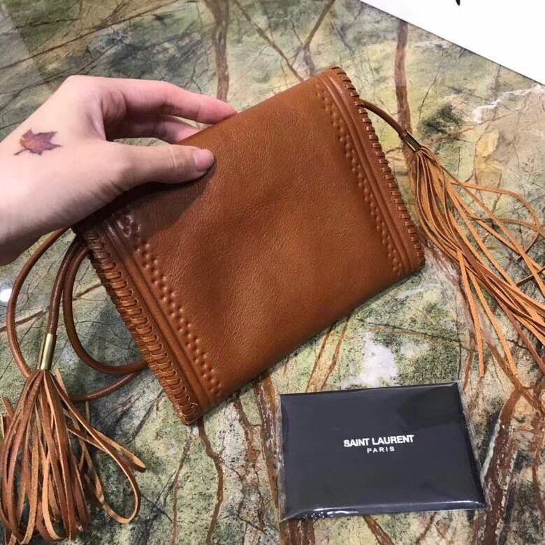 Saint Laurent popular sportswear silhouettes with the Envelope belt bag. Instantly recognisable thanks to its leather tassels, this piece boasts a envelope shape and a removable, adjustable strap. Fix high on the waist, sling over the shoulder or carry as a clutch for versatile styling.