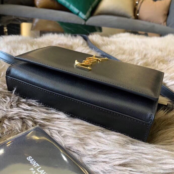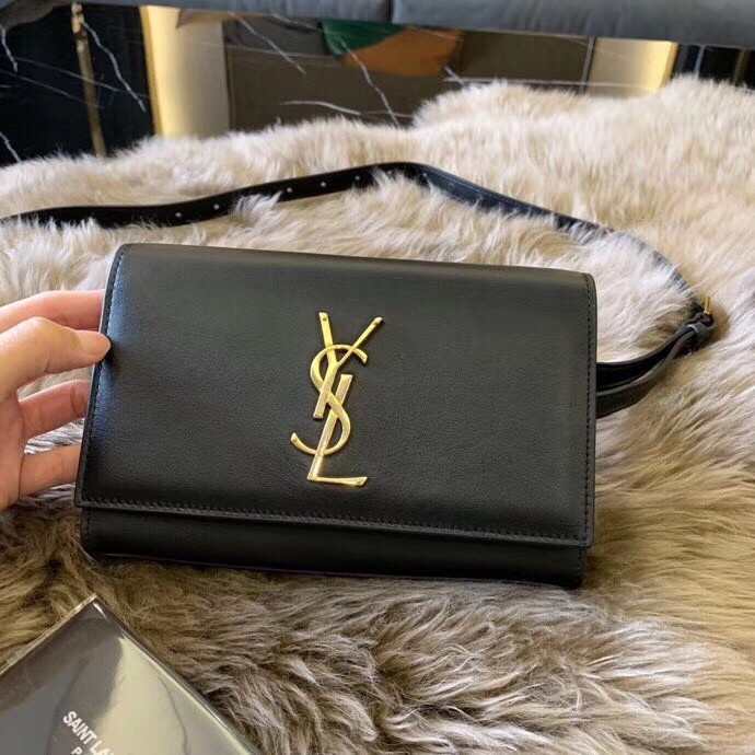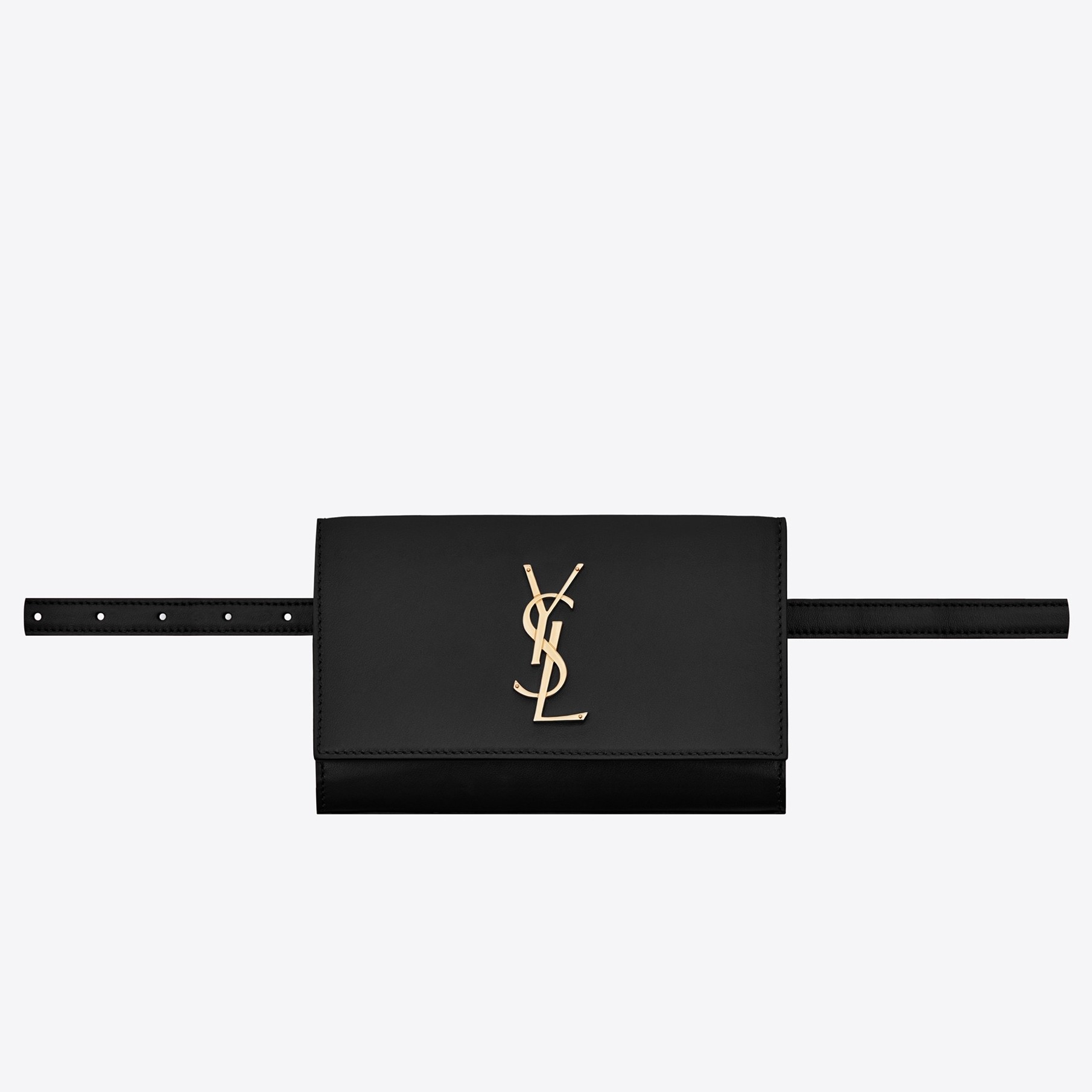 Few logos are as iconic as the 'YSL' monogram, which is displayed on the front flap of Saint Laurent's belt bag. This 'Kate' style has been crafted from smooth leather and perfectly sized to fit just the essentials - the handy interior slots will keep your cards close to hand. Wear it looped through jeans or across the body.