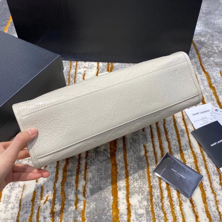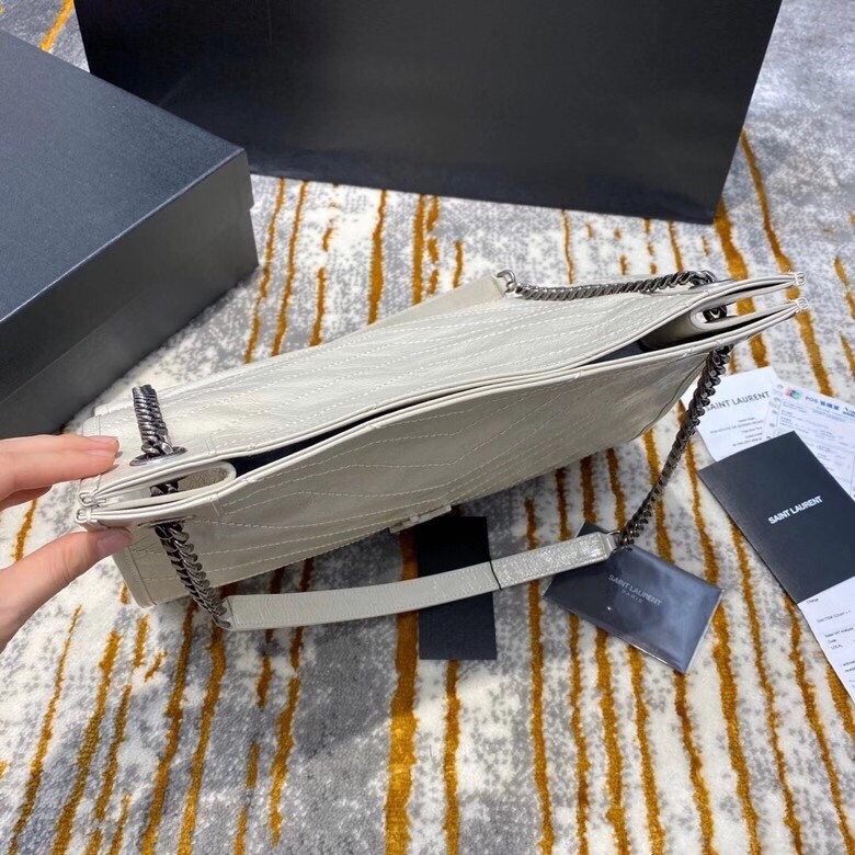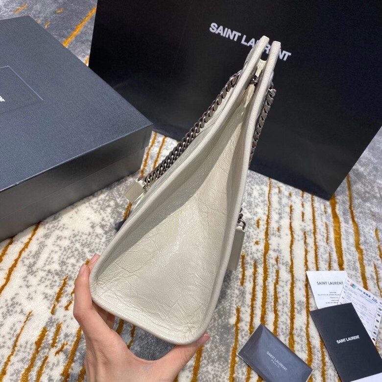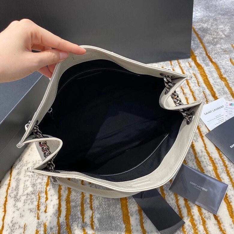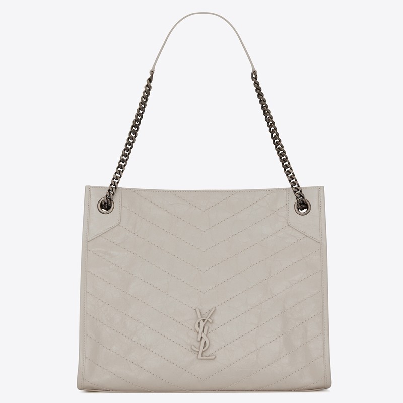 Saint Laurent's 'Niki' tote bag has been made from crinkled glossed-leather that's subtly quilted. Modeled on classic shoulder styles, this roomy version has multiple compartments and a zipped pocket to keep your essentials organized. Wear it cross-body during the morning commute or double up the chain strap for a shorter drop.