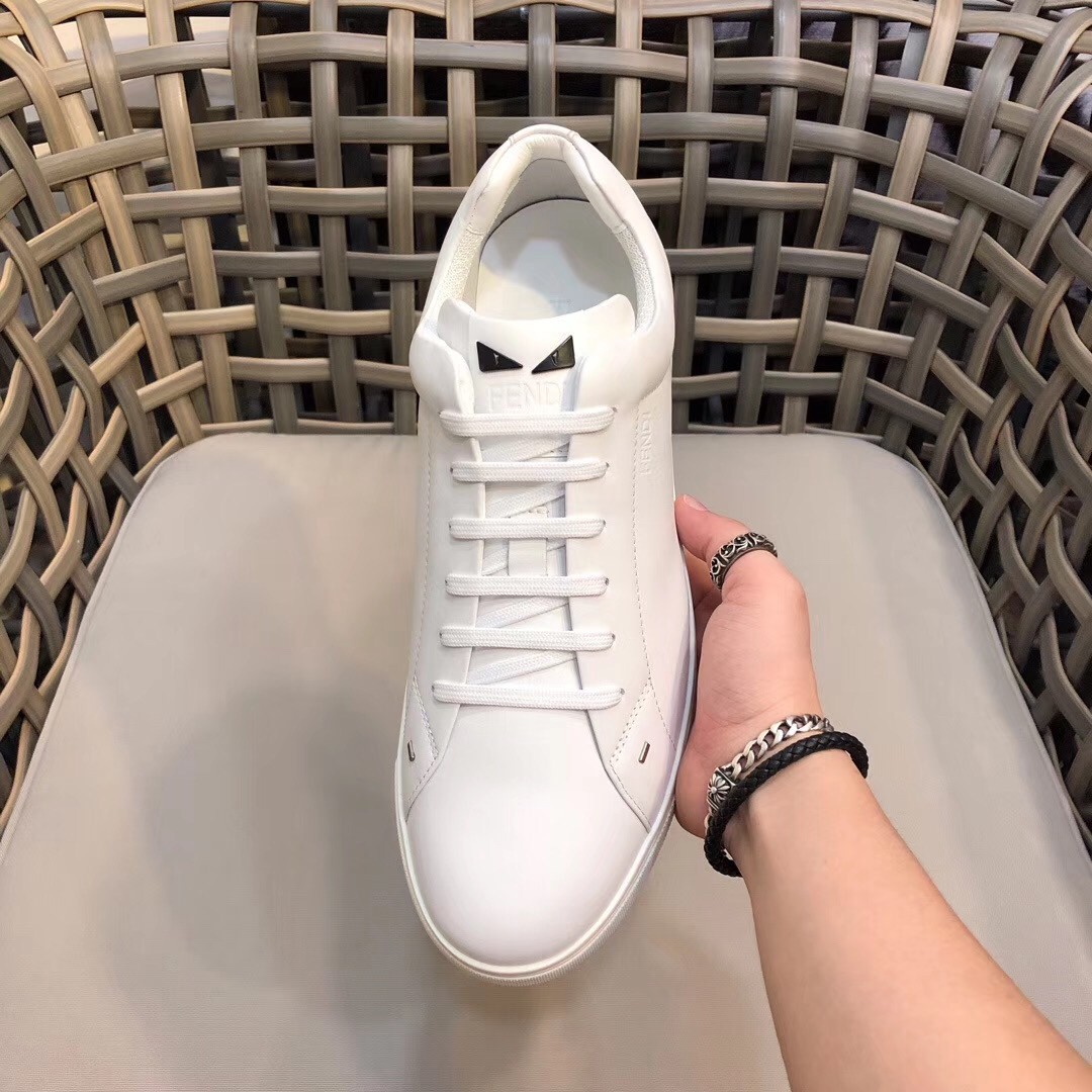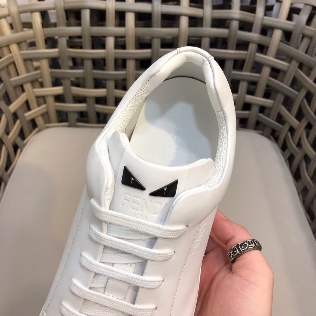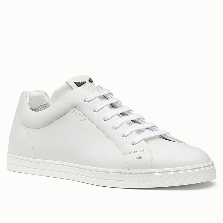 Lace-up sneakers in soft white leather featuring a clean, minimalist design with micro-appliqués in the shape of the Bag Bugs eyes on the tongue. Interior lining with micro-mesh tech fabric, lightly padded for maximum comfort. Rubber cupsole in a tone matching the shoe.