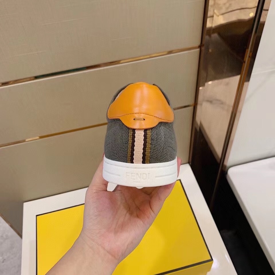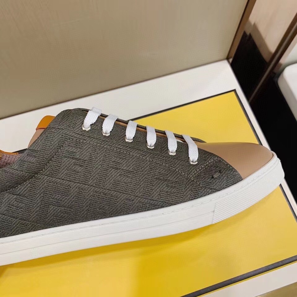 Fendi Low-top Sneakers In Khaki Canvas with Leather