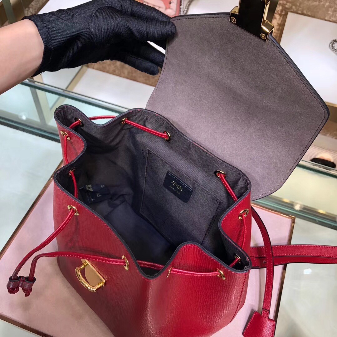 Launched in 1925, Fendi is revered for its striking motifs and use of luxurious materials and Italian craftsmanship. This leather backpack is complemented with a large metal logo and matching gold-toned trims, finished with a padlock closure and hanging key charm.
