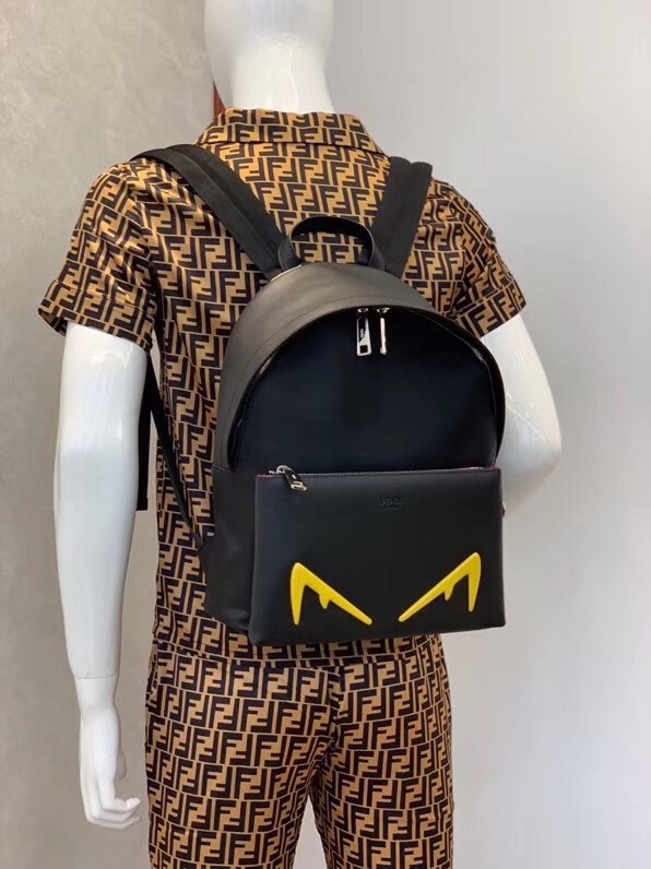 Fendi takes its iconic peepers to a slightly darker level this season, they’re called Diabolic Eyes, and look quite at home glaring from the front of this nylon backpack. It’s trimmed with smooth leather and silver-toned hardware engraved with the Italian brand’s logo. Whether you want to carry it by the top handle, or shoulder straps, just make sure it’s with a bomber jacket and roll neck.