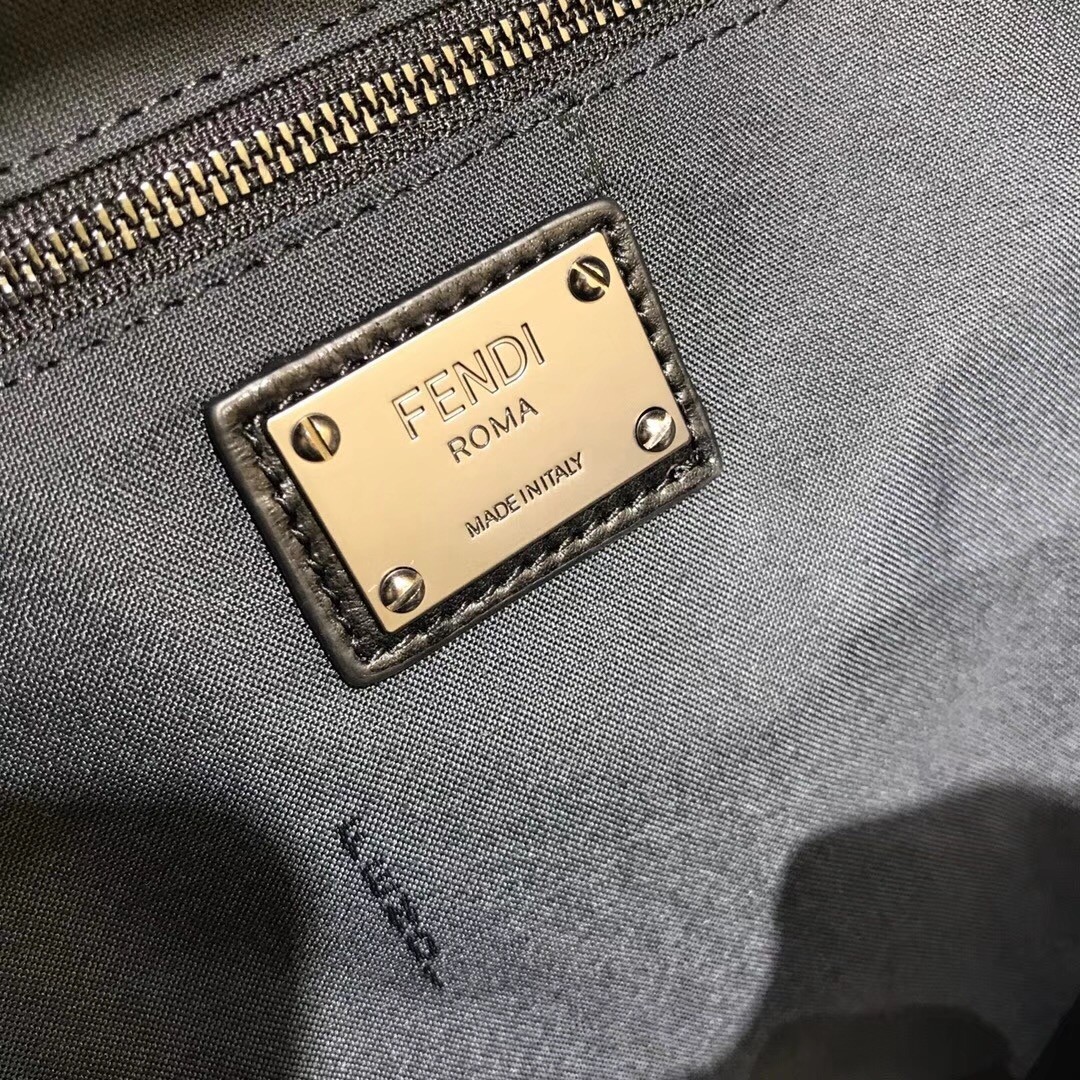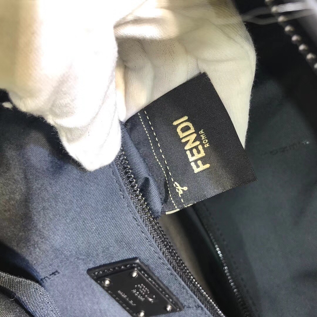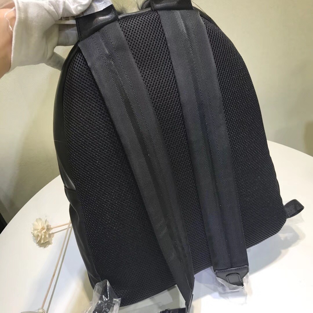 Black nylon backpack with inlaid Bag Bugs eyes in tone-on-tone python and cayman, fur accent and front zip pocket. The eyes are made from black satin-finish metal. Fabric handle and shoulder straps and breathable technical mesh backing. Zip fastening with leather pull, 1 internal pocket.