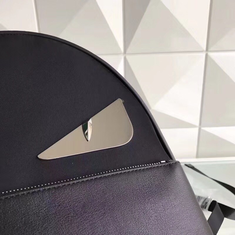 Fendi bags are the embodiment of accessorising with flair. Karl Lagerfeld breathes life into traditional silhouettes with contrasting neon linings, micro ribbing and the iconic frowning, ‘Bag Bug’ monster face. Expect to see heat debossed FF monogramming that emulates Grecian heritage and graphic logos. This Bag Bugs backpack from the SS18 collection is perfect for everyday use to carry all the essentials. Crafted from luxury black Italian leather, this backpack features a round top handle, adjustable shoulder straps, a main internal compartment with a two way zip fastening and an internal zipped pocket, a front zip compartment and is finished with the signature Bag Bug detailing in silver-tone plaques to the front of the bag.