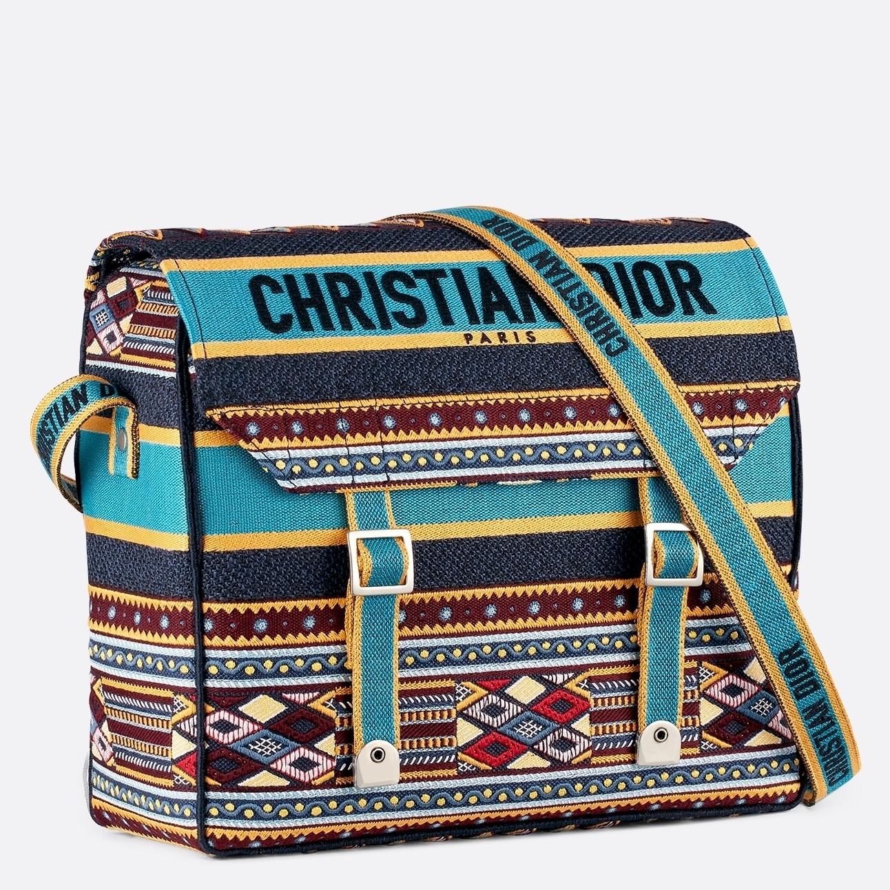 The modern look of this Diorcamp Dior messenger bag was inspired by Dior's famous embroidered canvas collection. This crossbody bag has lines and strap details reminiscent of traditional mail satchels. The dynamic Christian Dior motif ensures this bag will quickly become one of the fashion house's newest cult items.