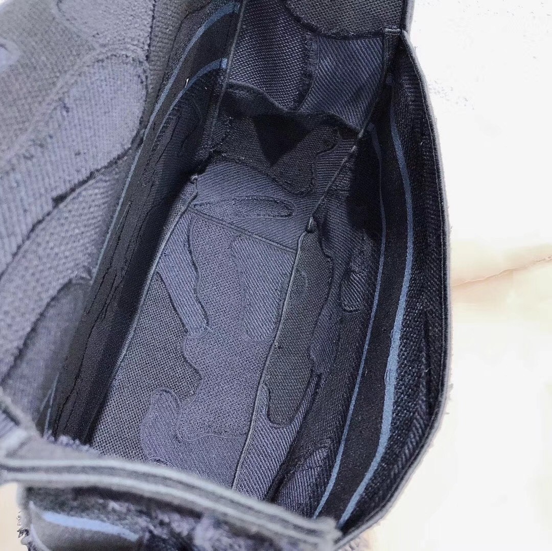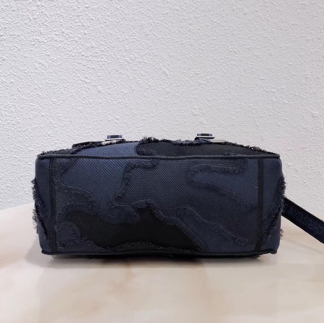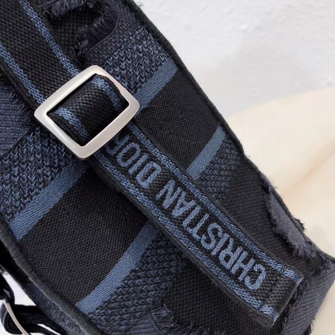 Maria Grazia Chiuri updates the classic messenger bag with signature Dior elements for a relaxed yet fashion-forward look. Crafted with a blue hand-cut material and fringe giving it a camouflage effect, its urban inspiration is enhanced by the iconic tonal "Christian Dior" signature.