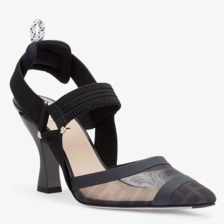 Melding sportswear inspirations with a classically feminine silhouette, these quirky Fendi pumps make a striking addition to your footwear collection. Resting atop a sculptural heel that hits the sweet spot for elevation and comfort, they mix subtle Fun Furs logo-detailed mesh with cushioned elasticated straps, lending an irreverent finish that is equally elegant and casual.