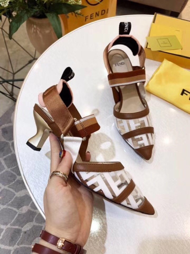 These quirky Fendi pumps make a striking addition to your footwear collection, dynamically incorporating the kitten heel trend into a silhouette of toughened femininity. Resting atop a sculptural mid-height heel that hits the sweet spot for elevation and comfort, the pair made from PU with white FF motif. Finished with edges in leather and straps in tricolour ribbon. The padded cushion and trekking shoe tab add a sporty touch.