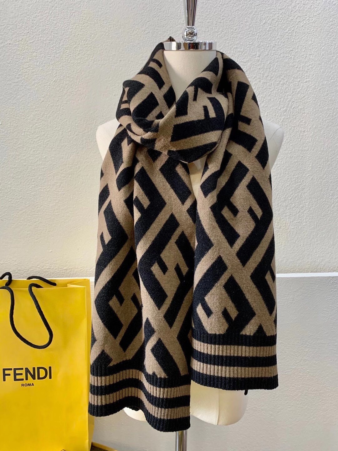 Scarf made of an exquisite blend of wool and viscose with a soft, compact feel. The jacquard weave creates the iconic macro FF motif in tones of black and brown.