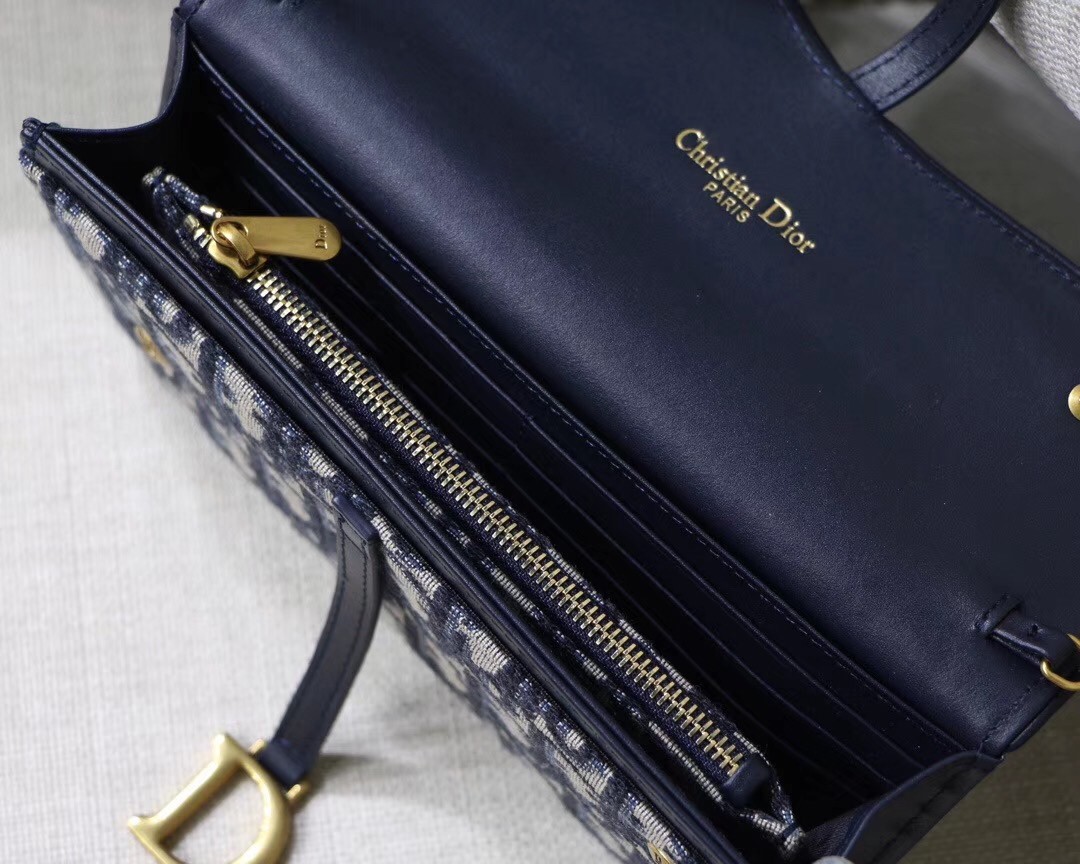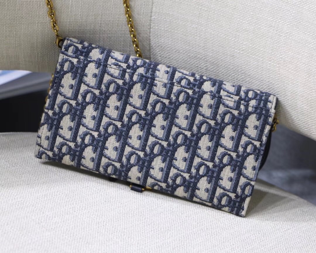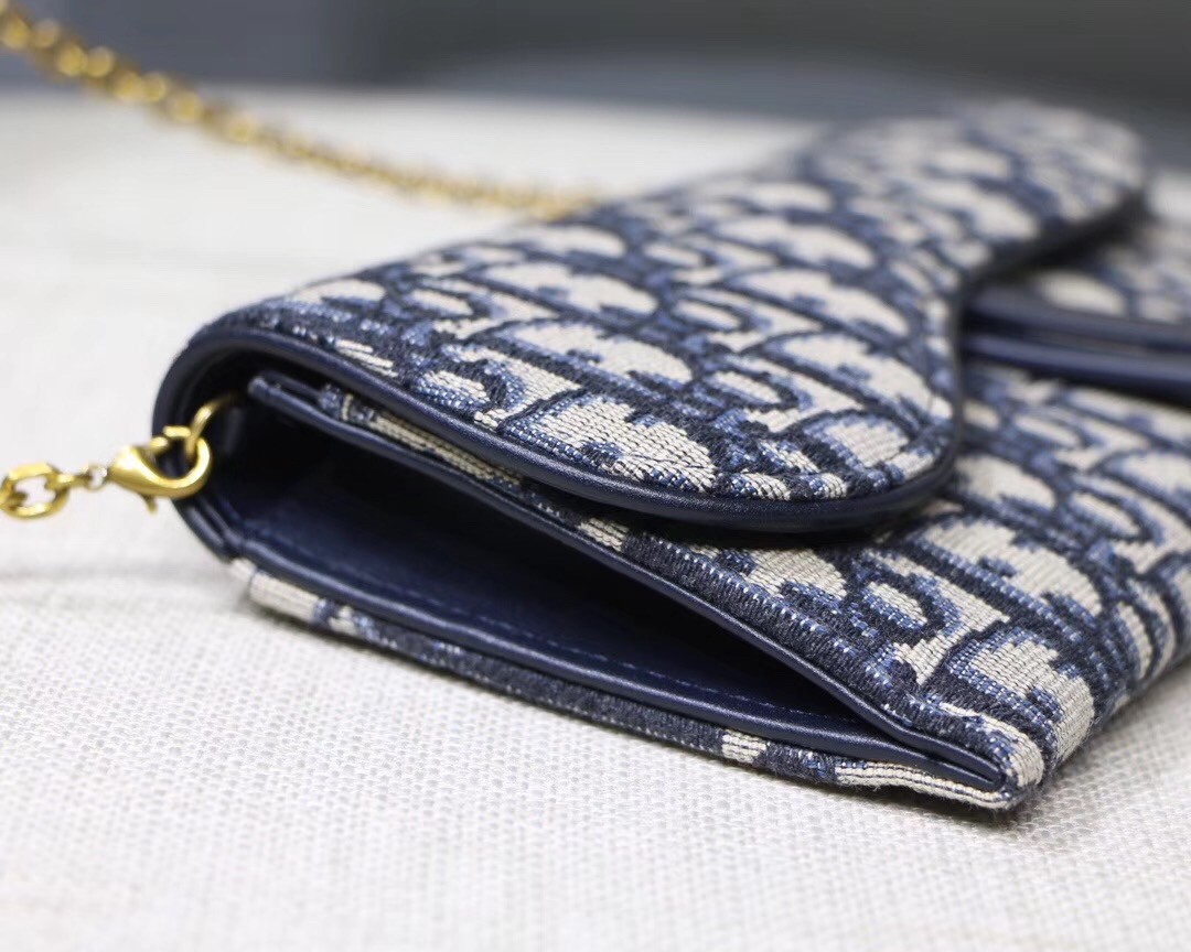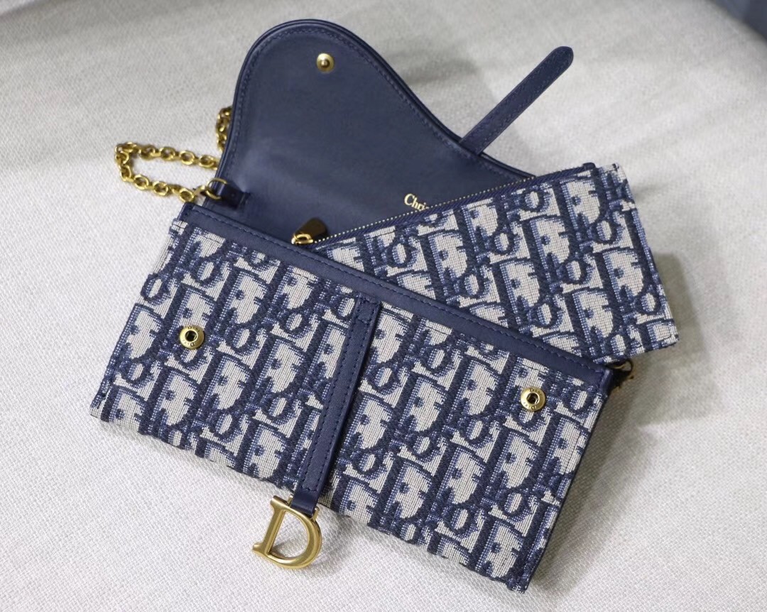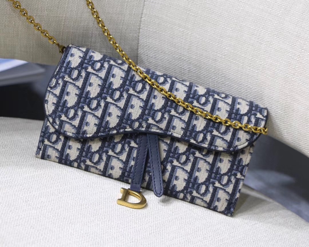 Dior's Oblique jacquard canvas complements the simple yet elegant design of the Saddle Chain wallet, which contains one removable pocket, adapts to every occasion. Thanks to a removable gold-tone chain, it also offers a variety of carry options: on the shoulder, across the body or in the hand.