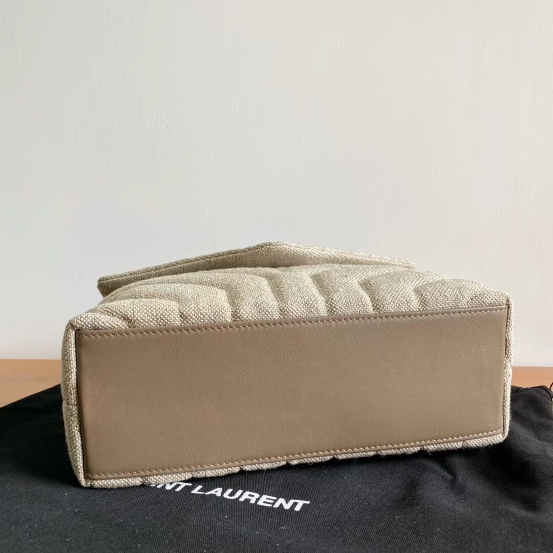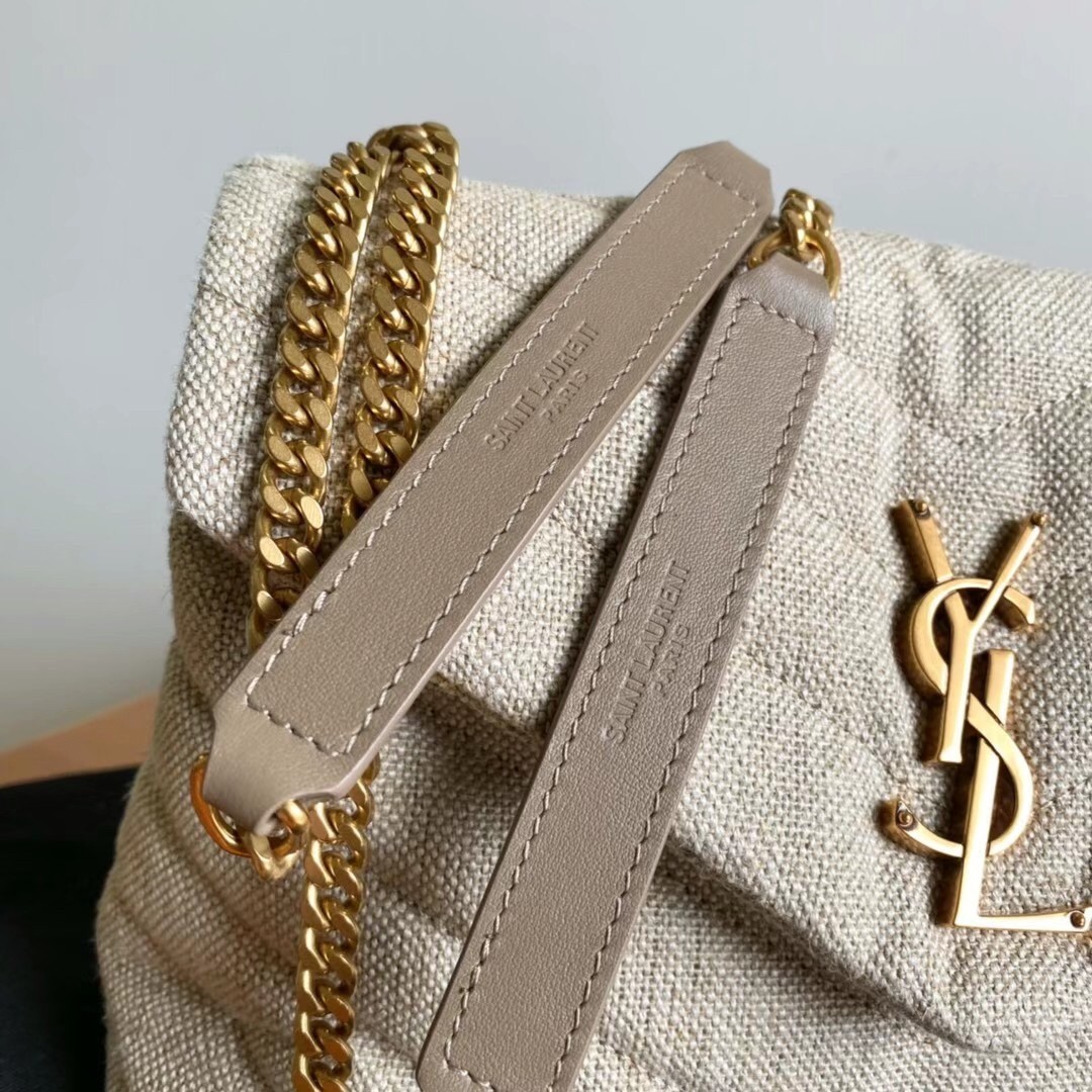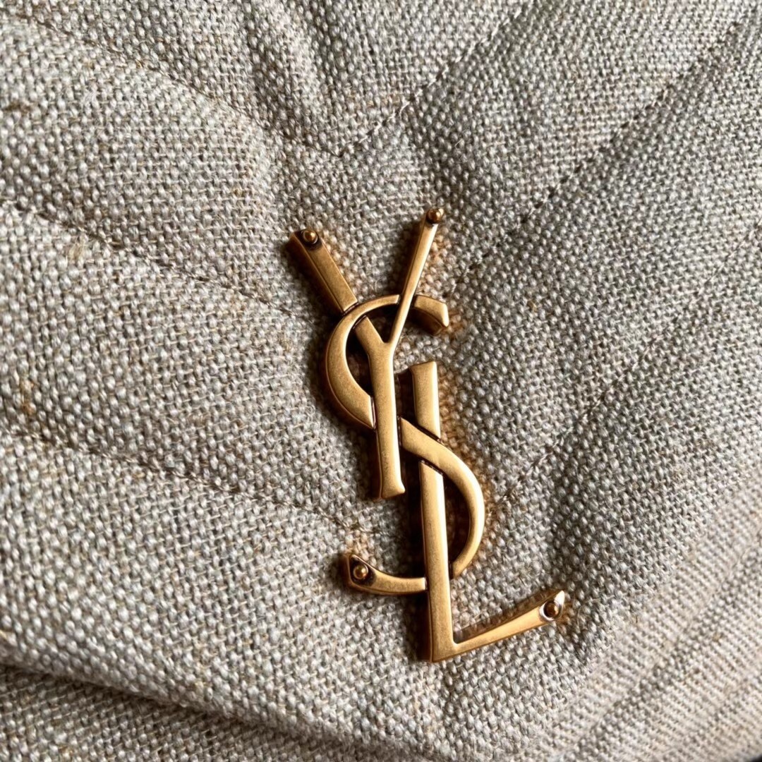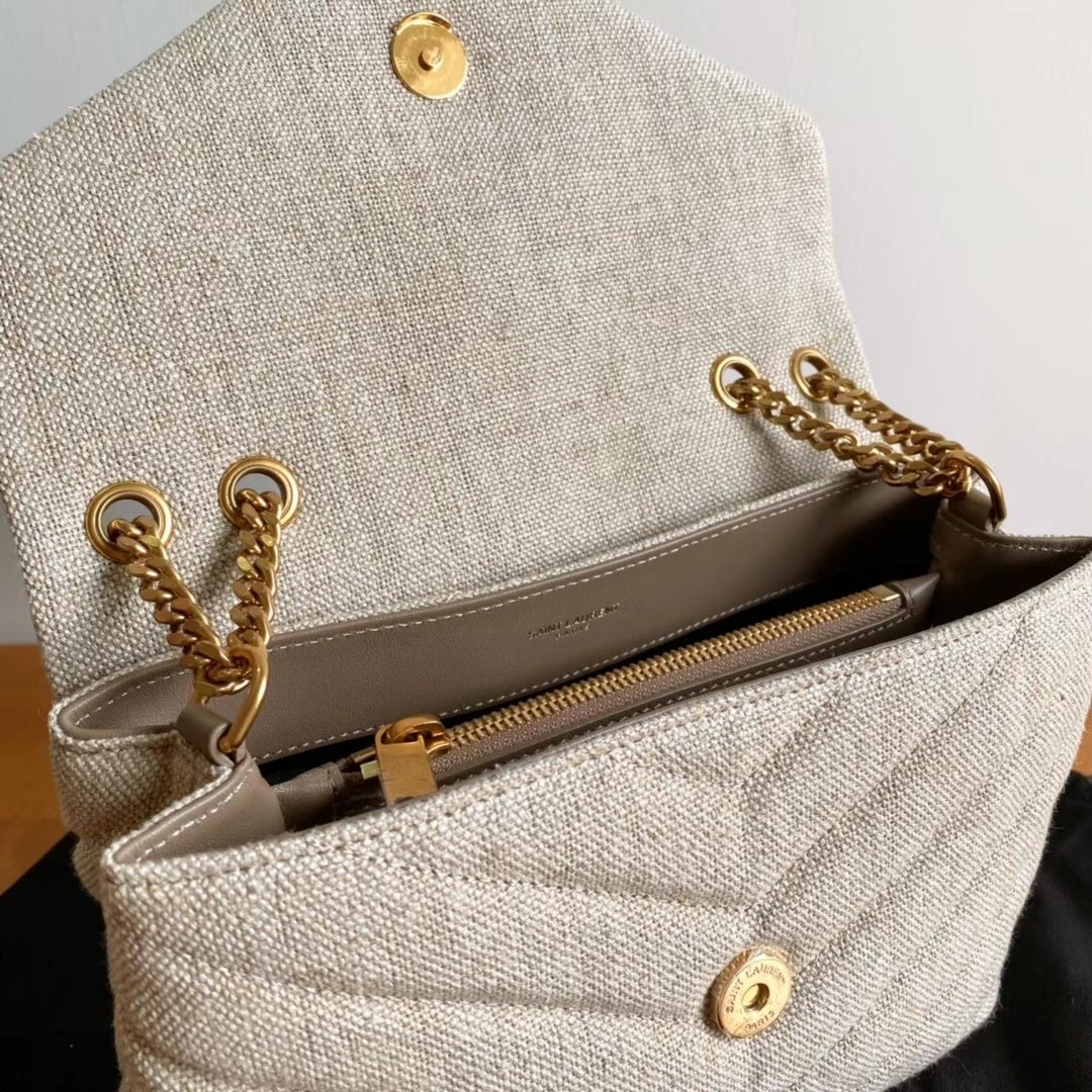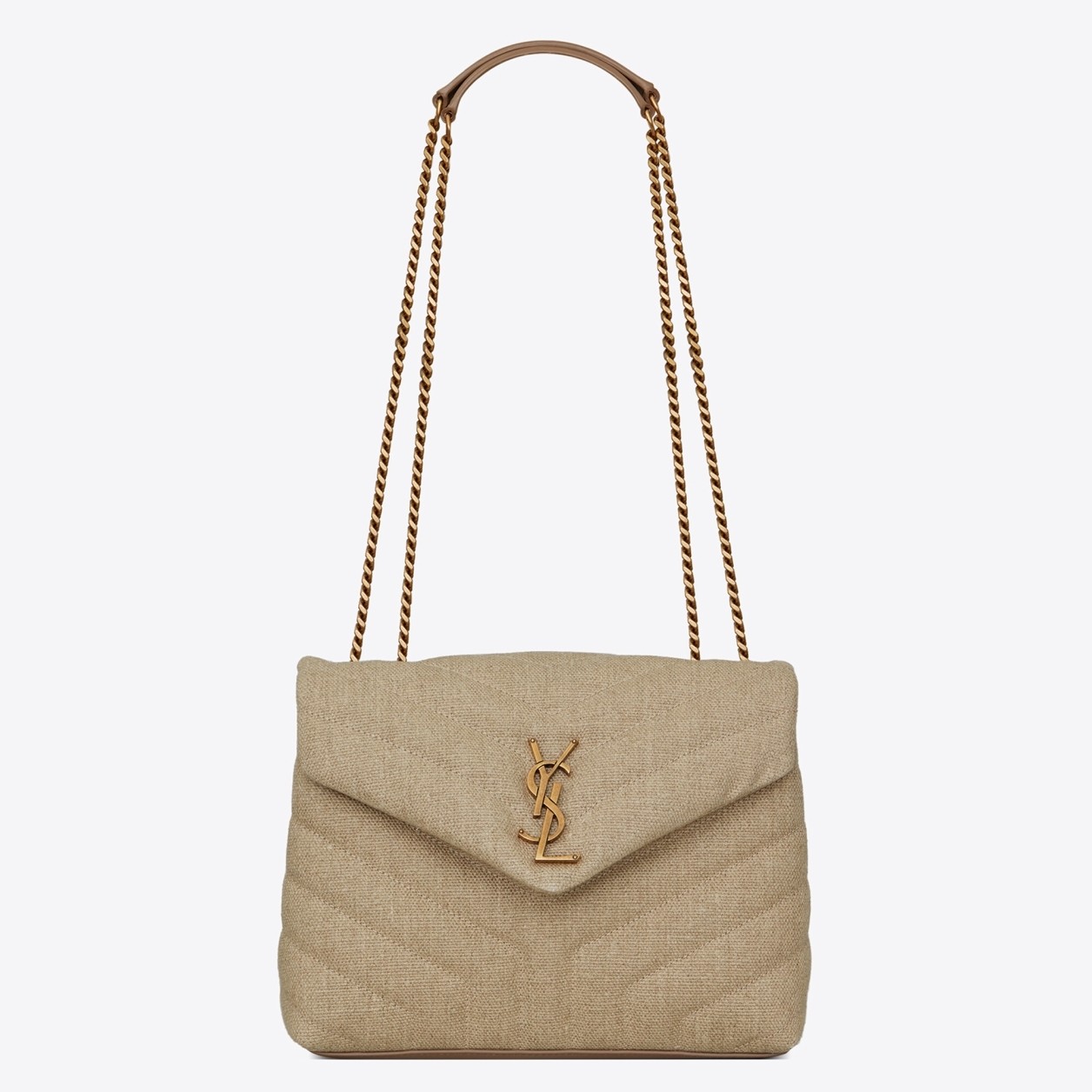 Designed in tribute to one of Saint Laurent's muses, the beige Loulou Small shoulder bag has gone on to become a style icon itself. This iteration is made from soft linen and is filled with specially designed airy foam that creates signature quilting. This design is finished with metallic hardware, including the iconic YSL monogram.