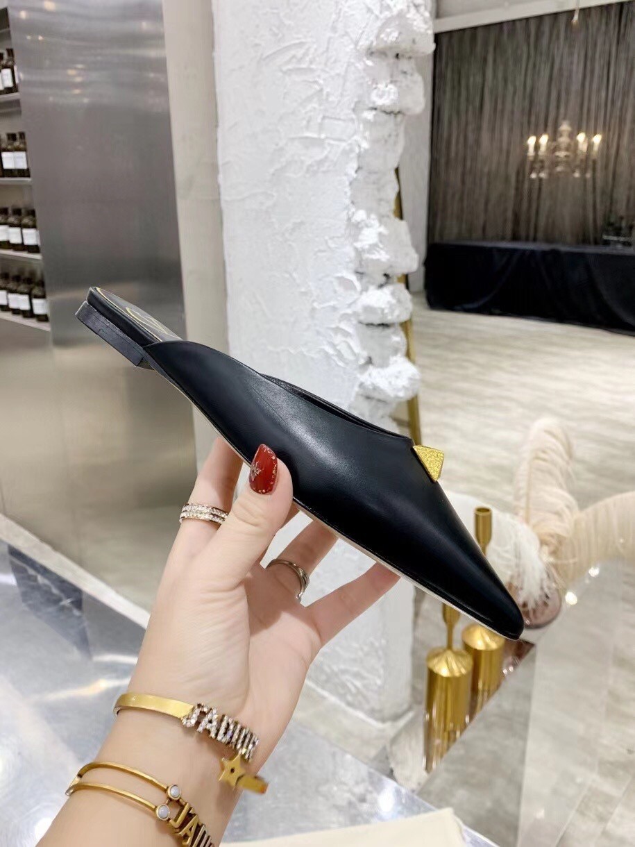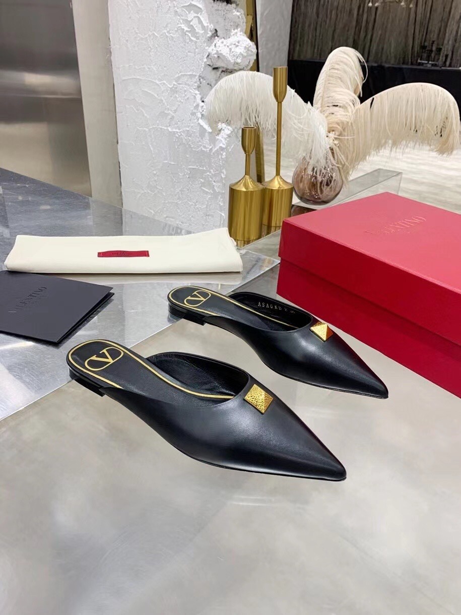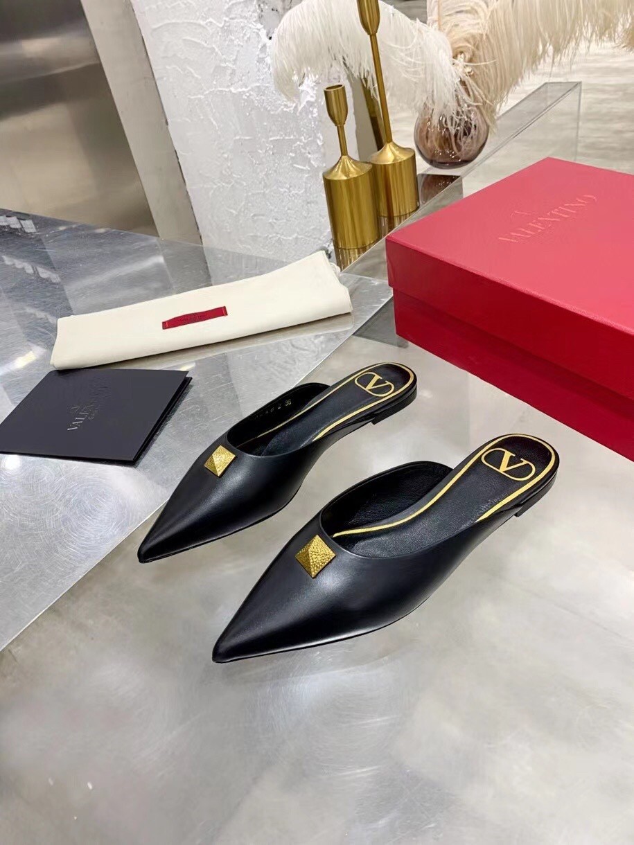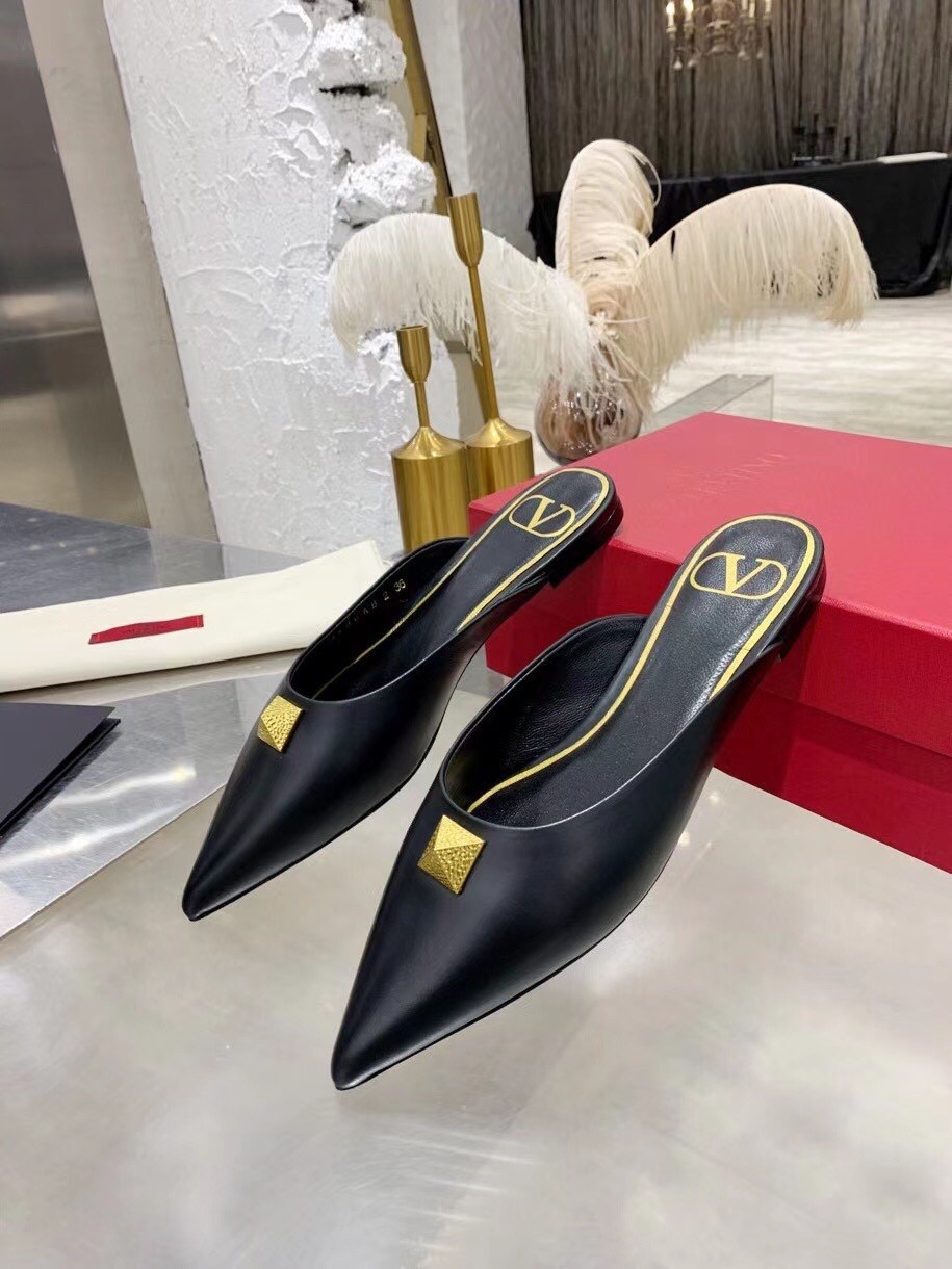 These flat mules from Valentino Garavani are punctuated by a single Roman Stud – a new iteration of the house's iconic hardware. Made from smooth calf leather, these mule-inspired flats have pointed toes, padded insoles, and slender heels.