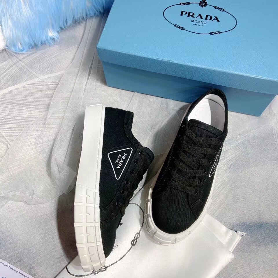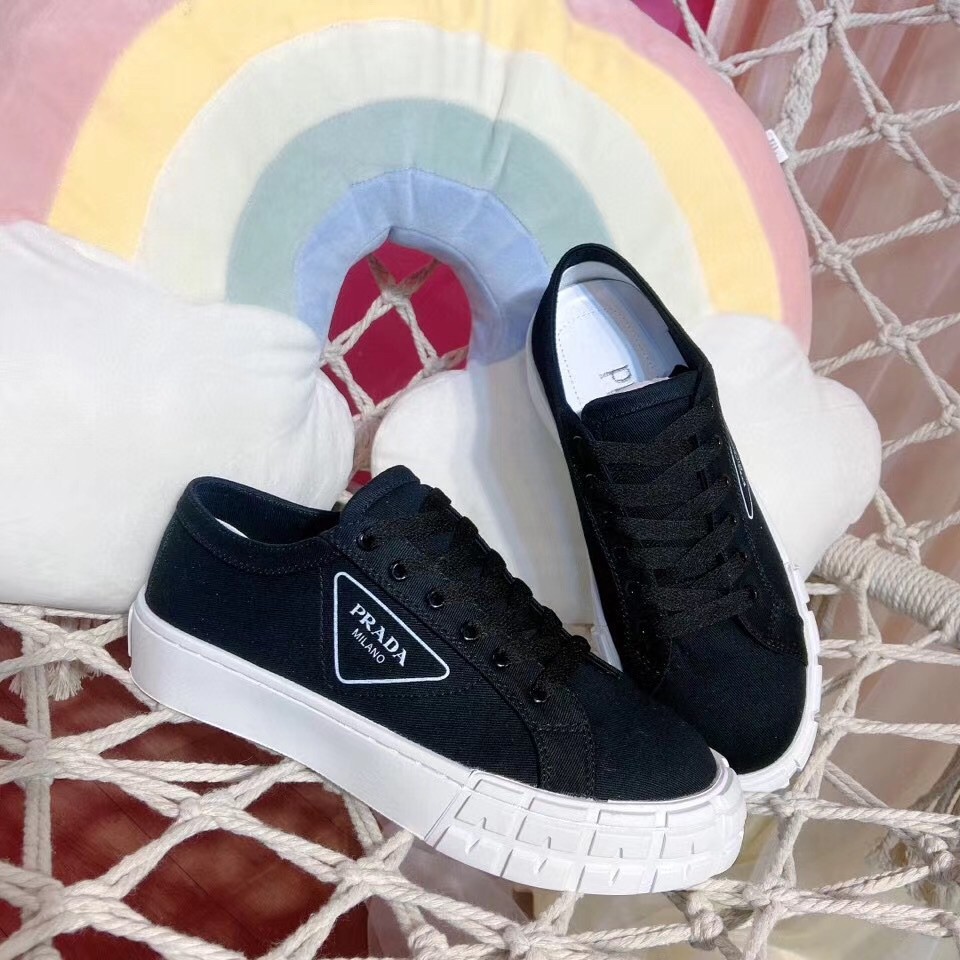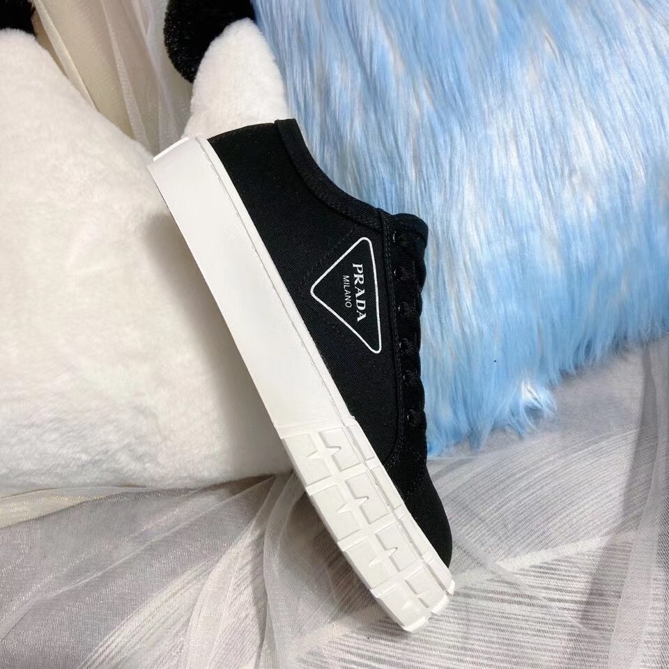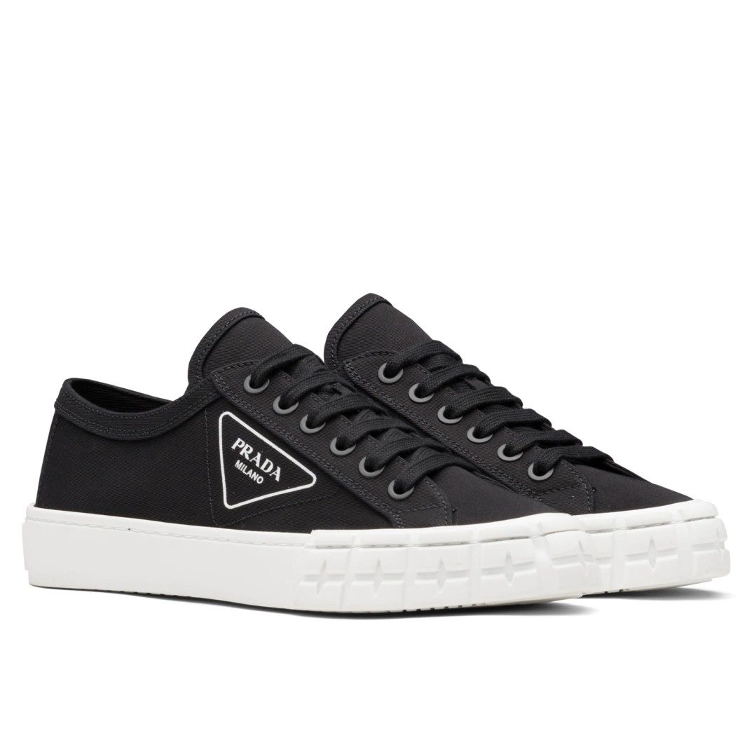 Prada's chunky sneakers grounded so many outfits at the brand's Resort '20 show, from midi skirts to floaty dresses. They're made from durable gabardine printed with signature triangular logos and have embossed rubber soles. Take your cue from the playful runway styling and wear yours with striped socks.