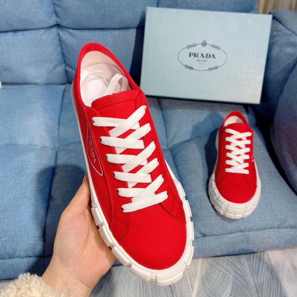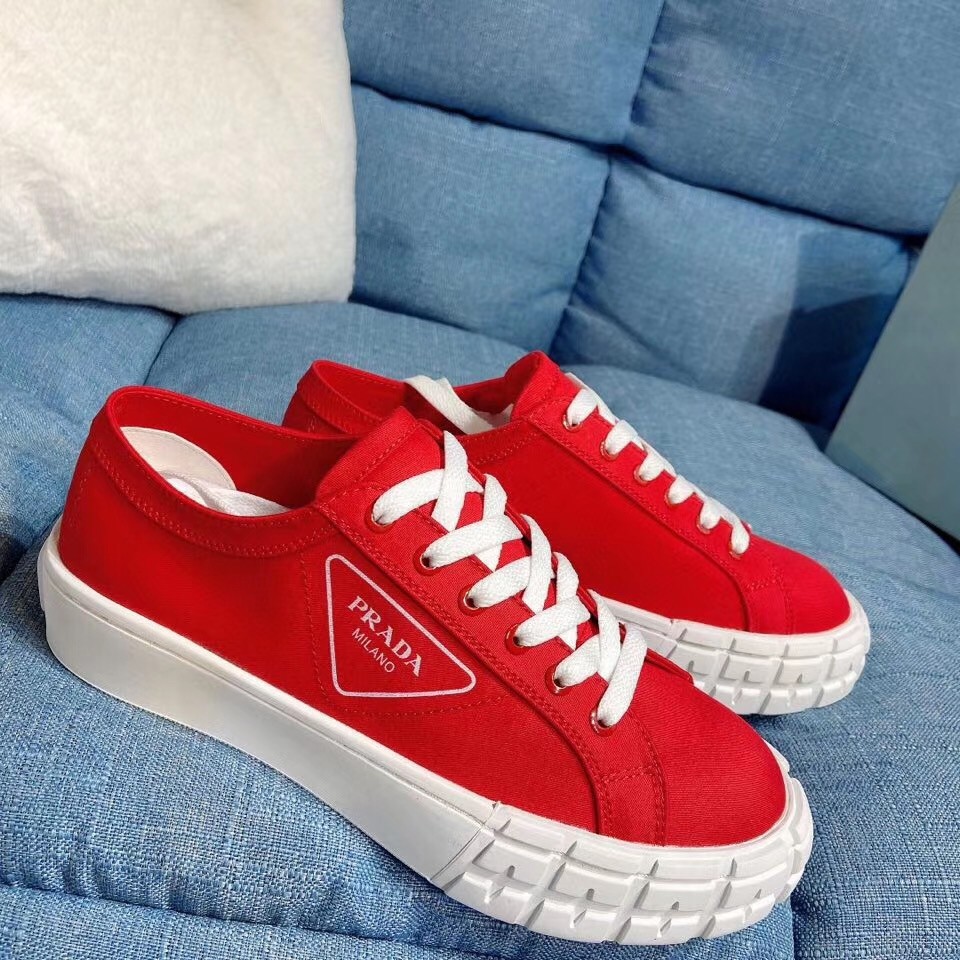 Prada Red Gabardine Fabric Sneakers