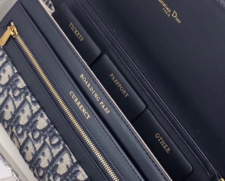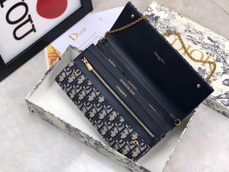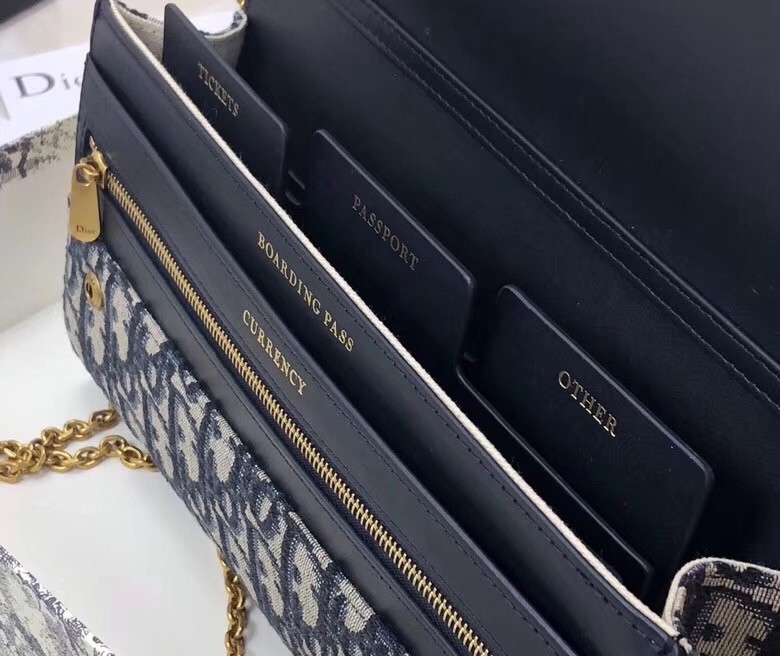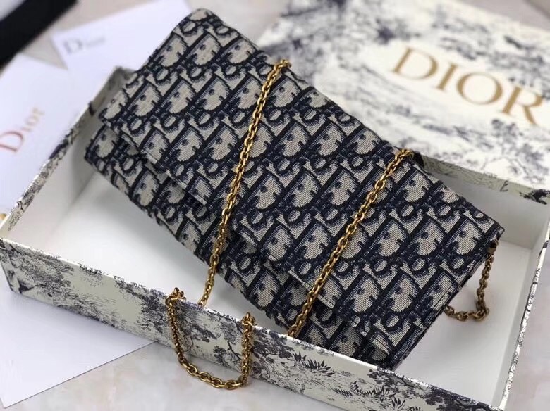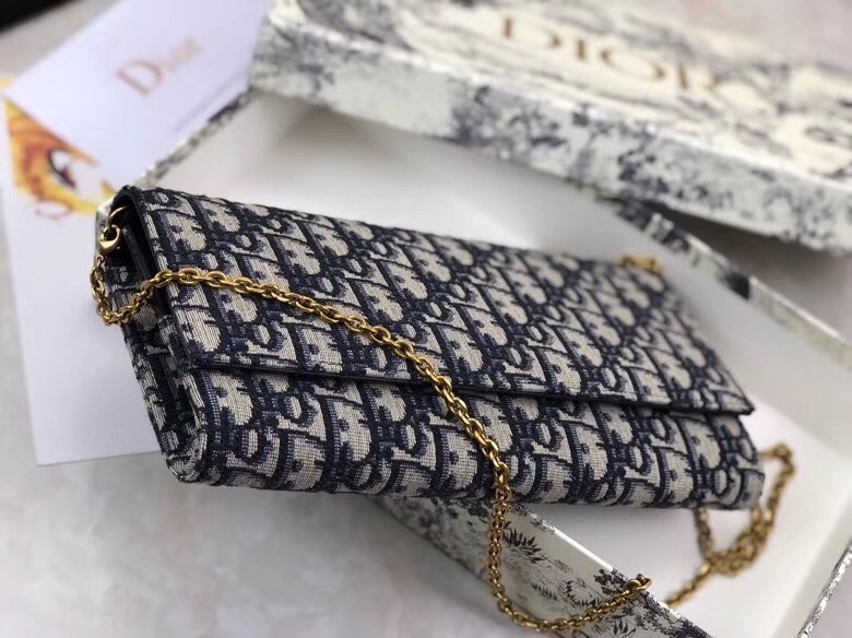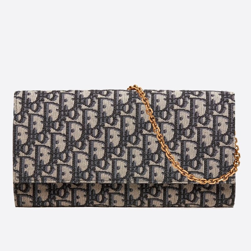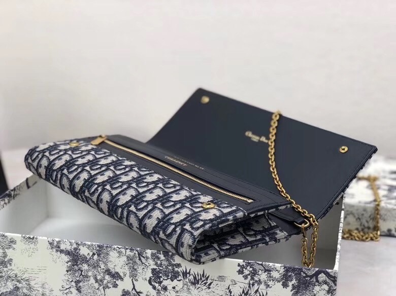 Dior Clutch Bag On Chain In Blue Oblique Canvas